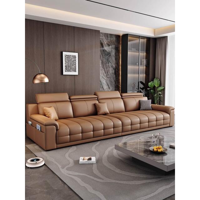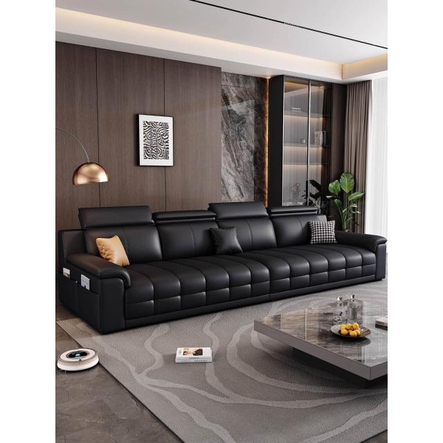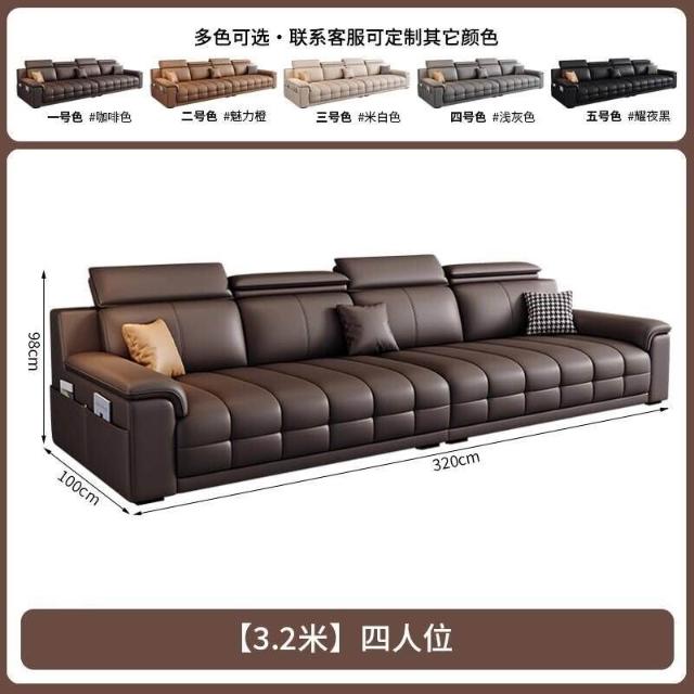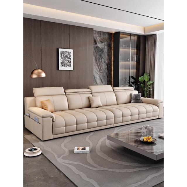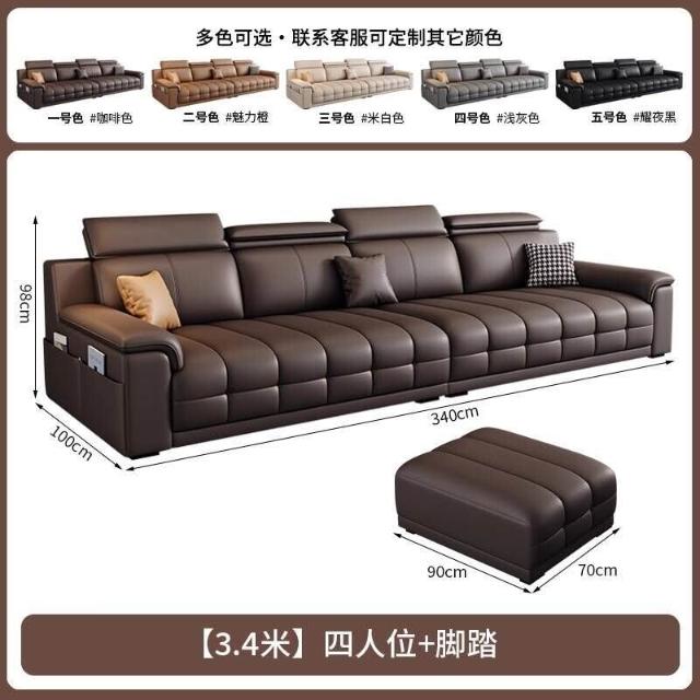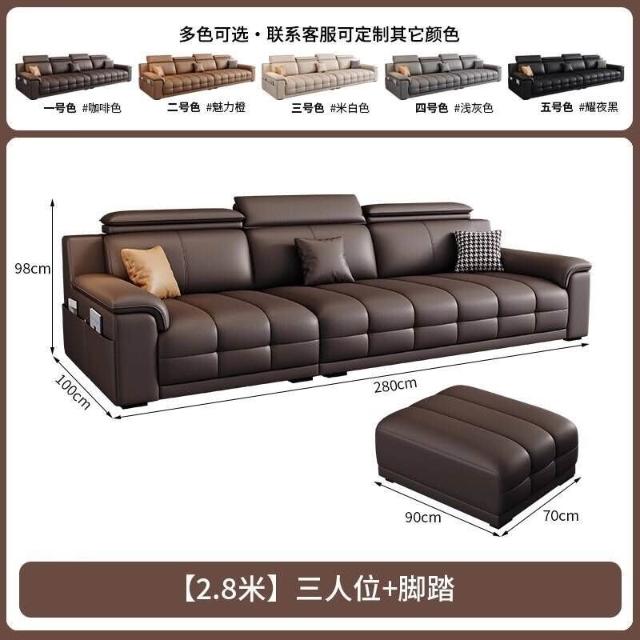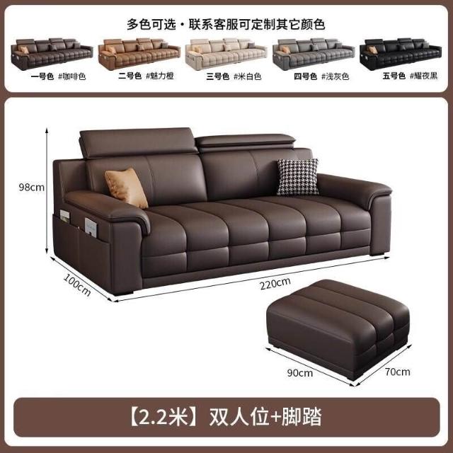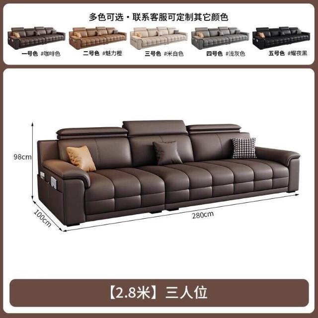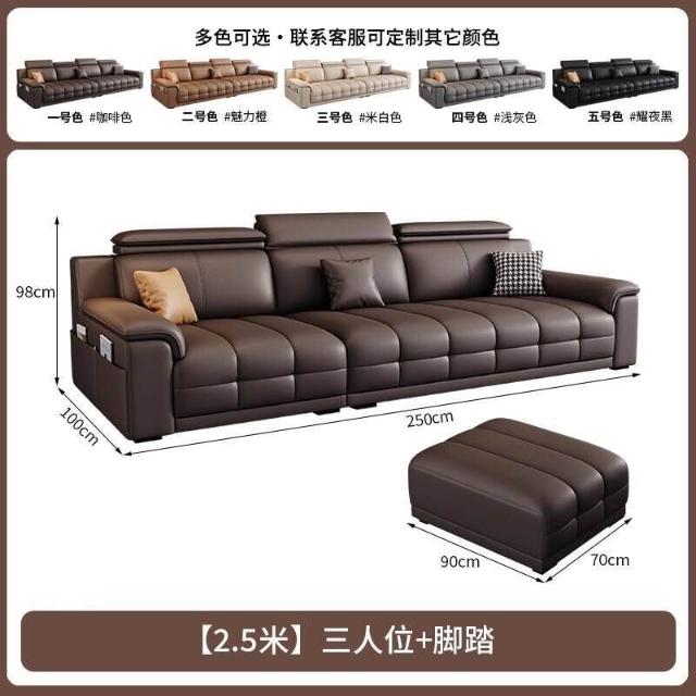 勞倫斯真皮沙發直排三人位小戶型意式極簡一字型客廳乳膠沙發組合