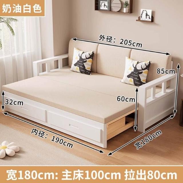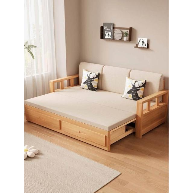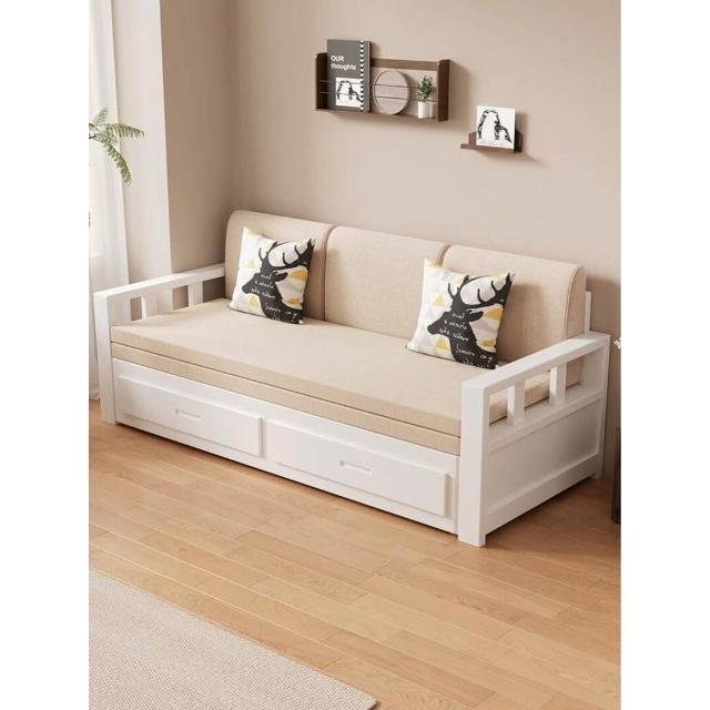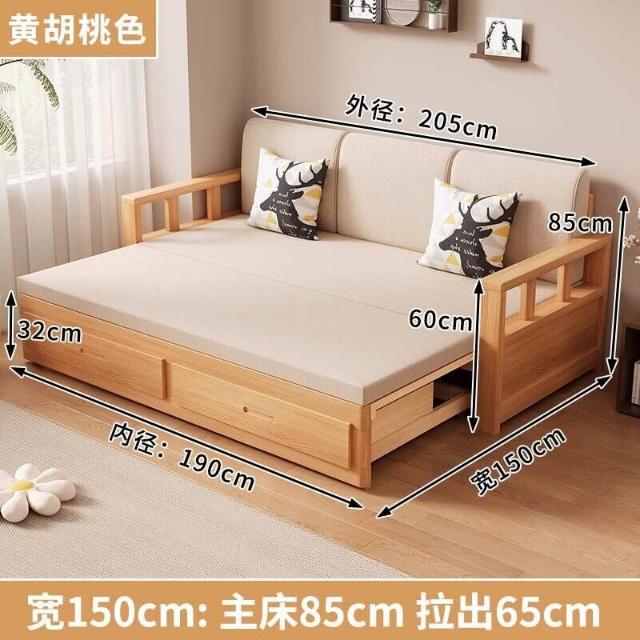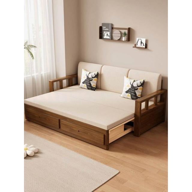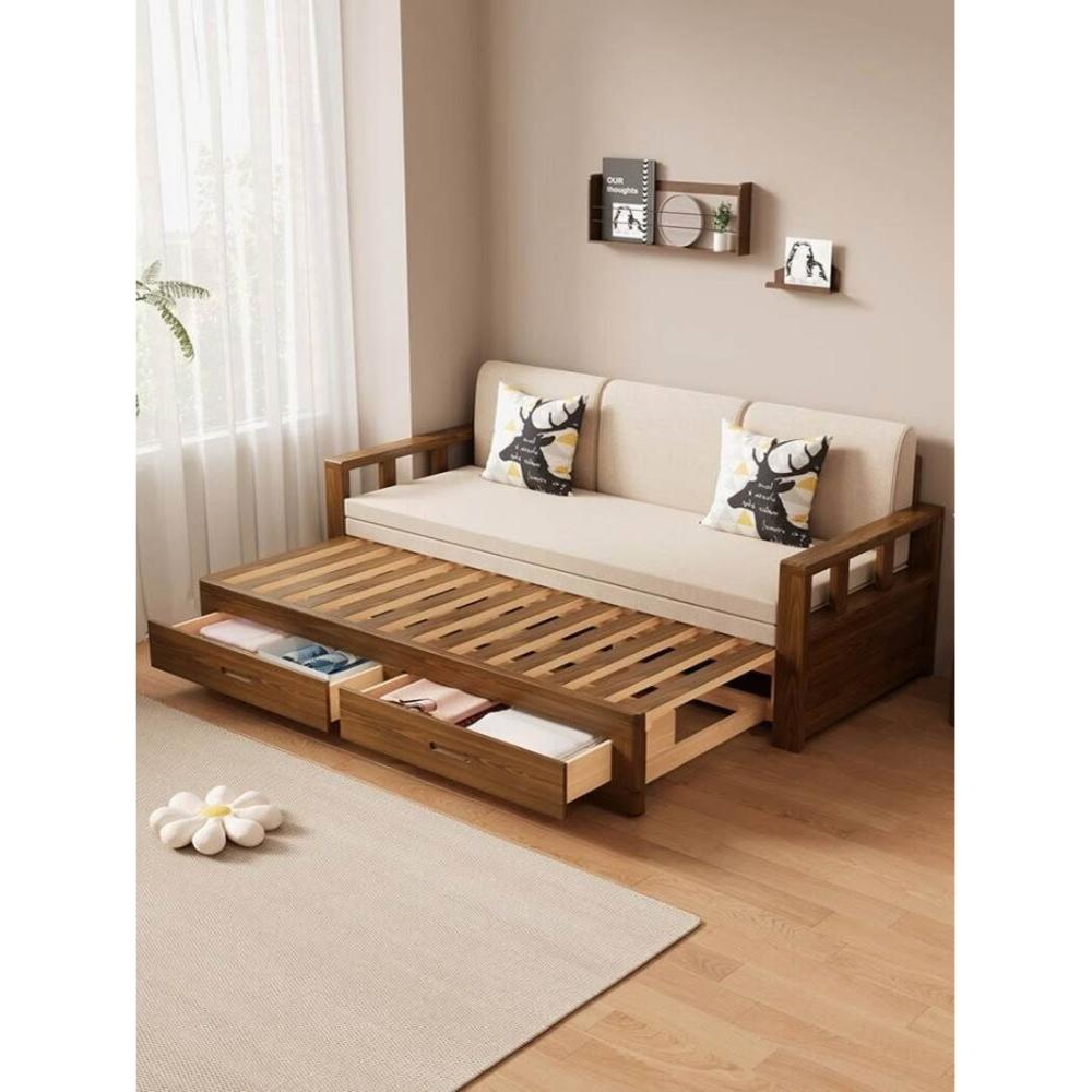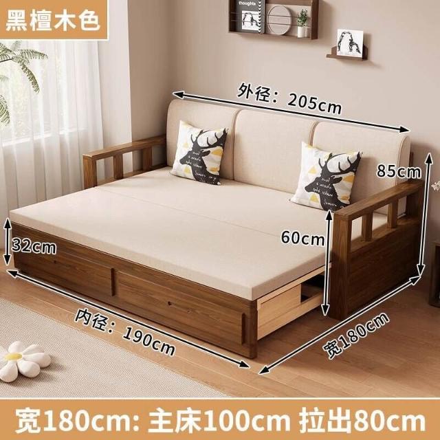 沙發床/兩人沙發/單人沙發/沙發/實木沙發床可折疊推拉兩用中式羅漢床伸縮小戶型客廳儲物原木沙發