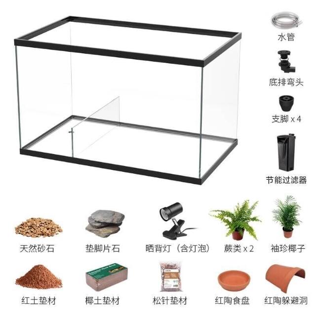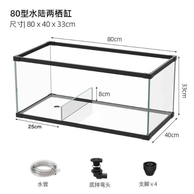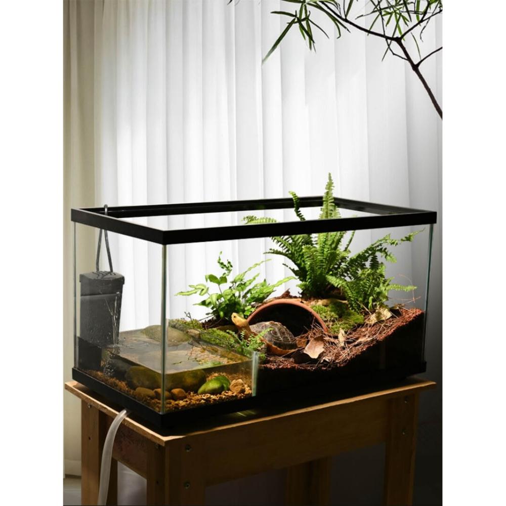 烏龜缸帶曬臺造景別墅玻璃生態造景水陸缸養黃緣半水龜專用飼養箱