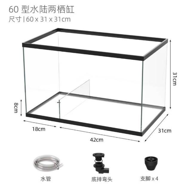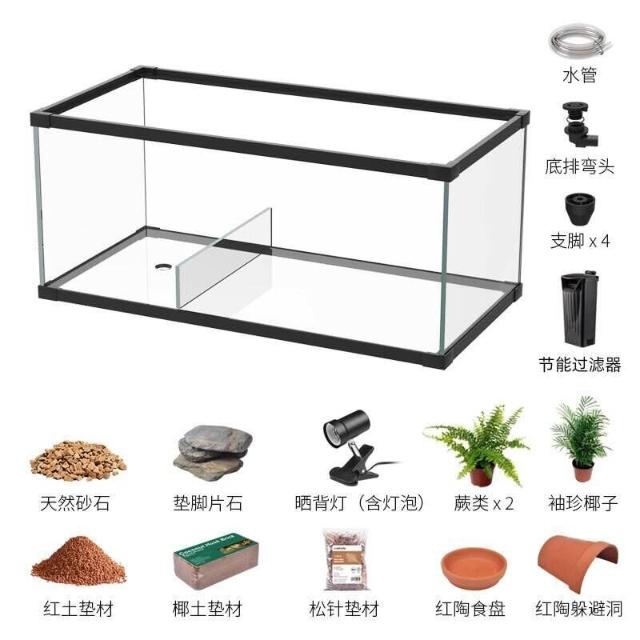 烏龜缸帶曬臺造景別墅玻璃生態造景水陸缸養黃緣半水龜專用飼養箱