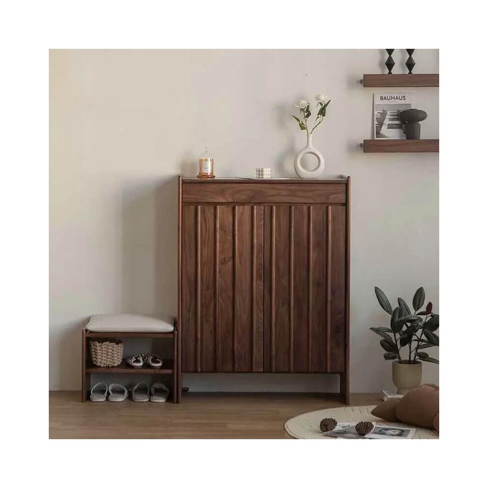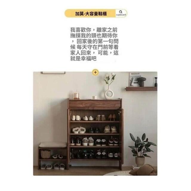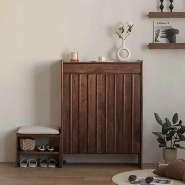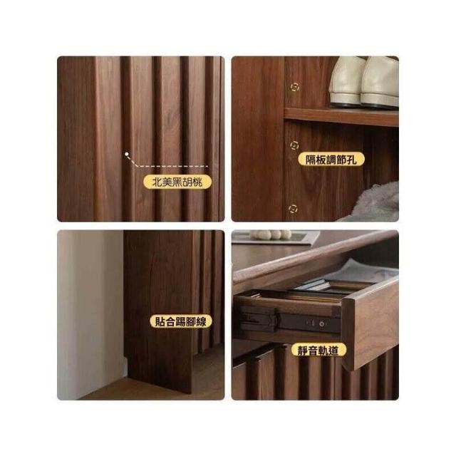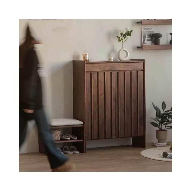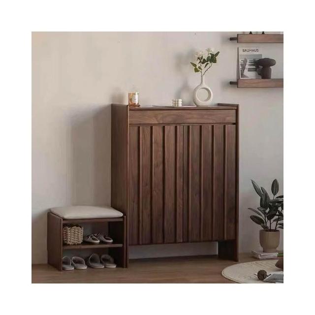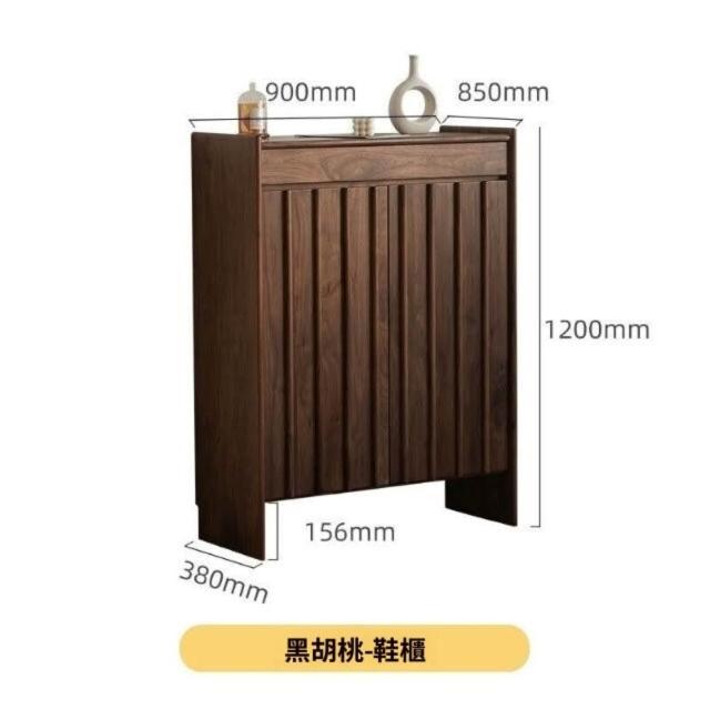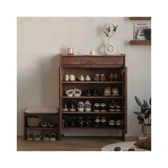 北歐復古黑胡桃實木鞋櫃櫻桃木家用門口玄關櫃儲物多層收納櫃