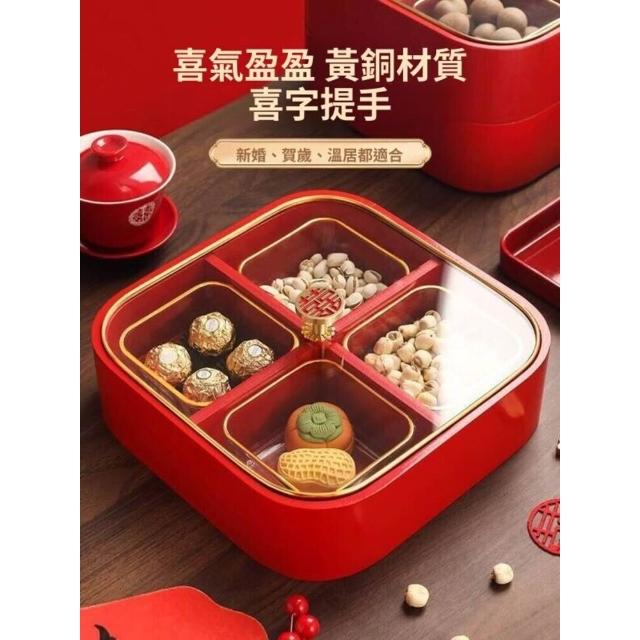 新中式實木紅色喜慶糖果盒家用客廳幹果盤新年結婚喬遷零食收納盒