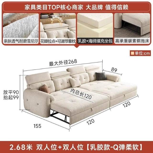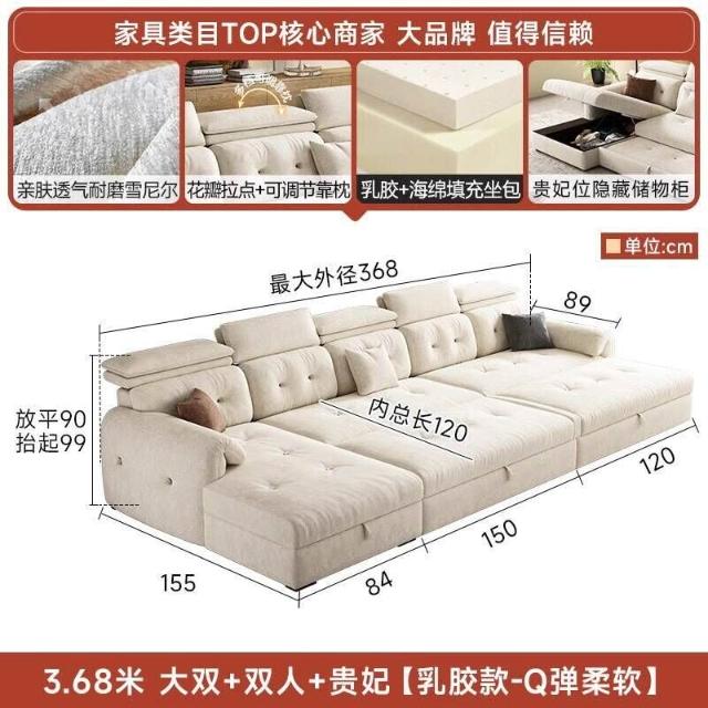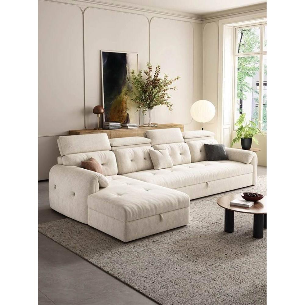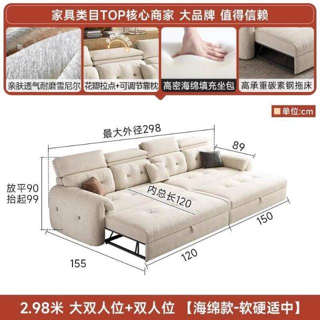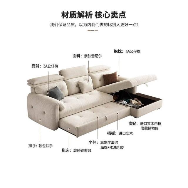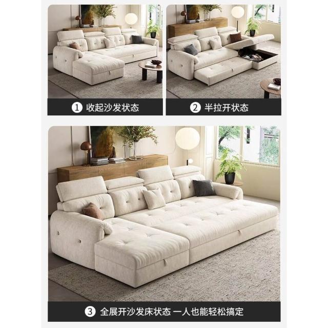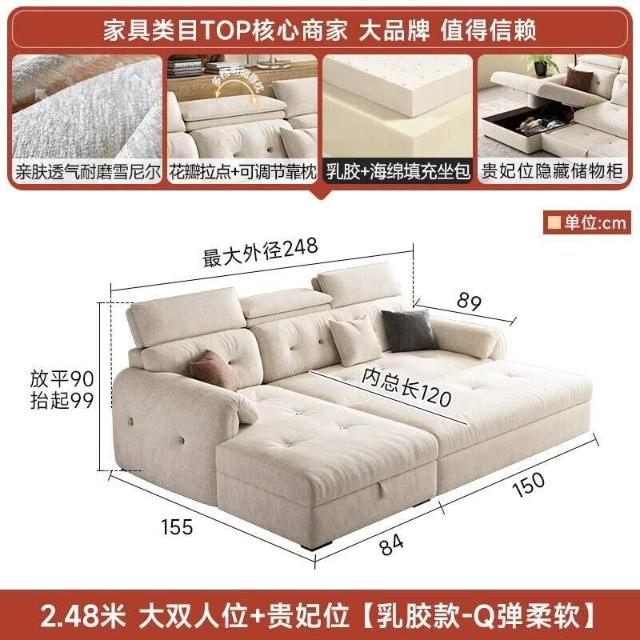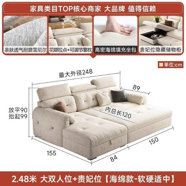 沙發床/三人沙發/L型沙發/高端雪尼爾布藝沙發客廳2025新款奶油風貴妃沙發床兩用家用可儲物