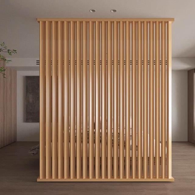 日式玄關實木隔斷客廳家用屏風入戶原木風簡約斜百葉遮擋格柵定製