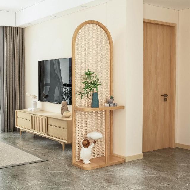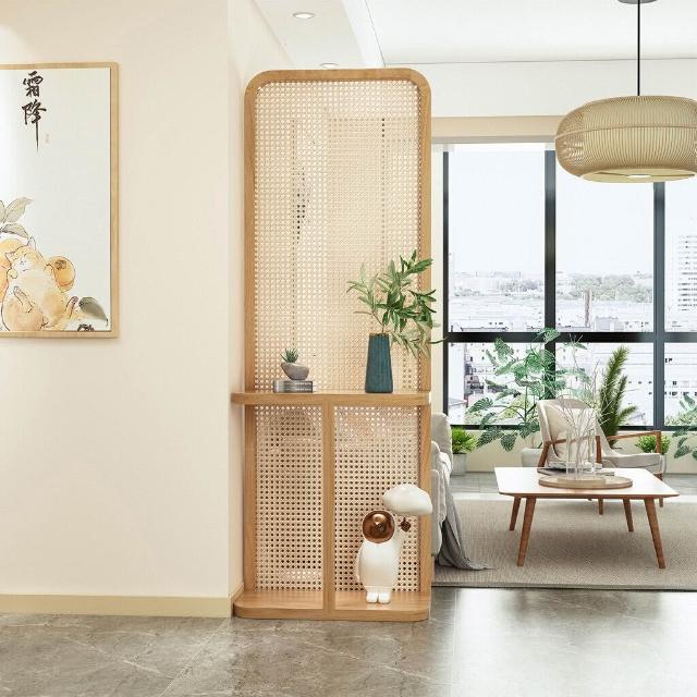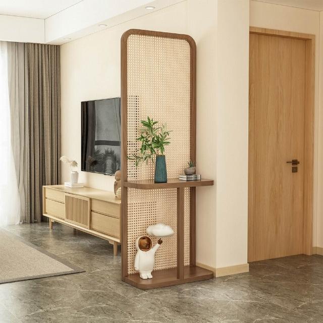 入戶正對門玄關隔斷屏風遮擋客廳沙發旁現代簡約原木風實木定製