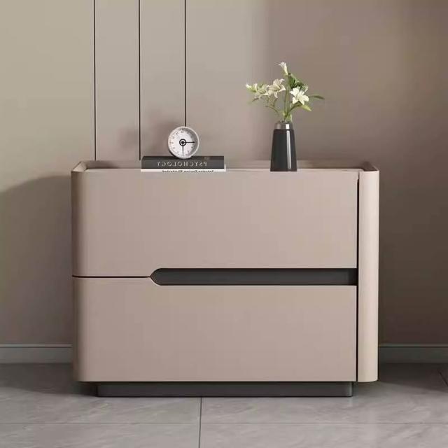 新款整裝奶油風輕奢現代簡約巖板床頭櫃實木意式落地款臥室儲物櫃 床頭櫃 床邊櫃 邊櫃 抽屜櫃 收納櫃