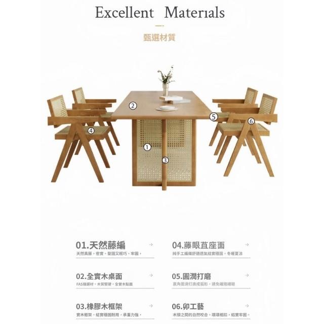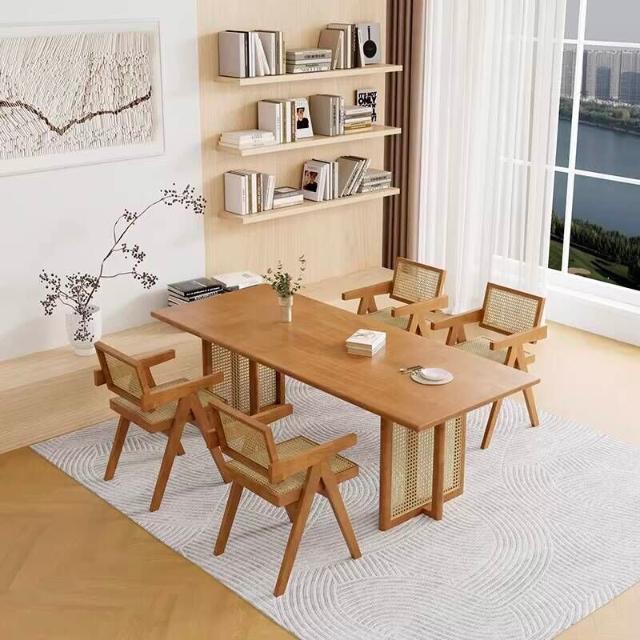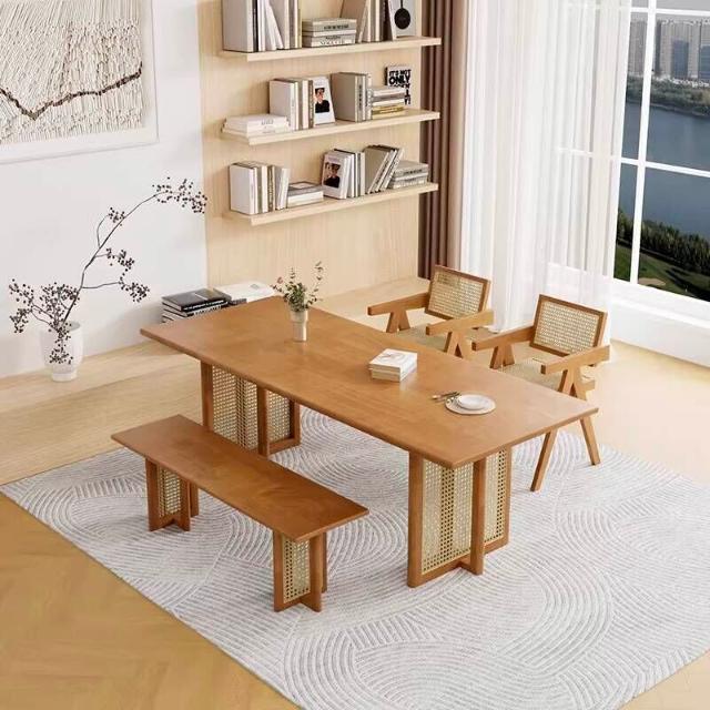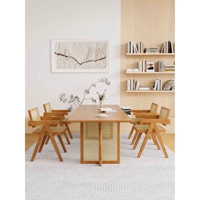 含稅/含運餐桌 洽談桌 會談桌 休閒桌 咖啡桌 北歐實木藤編餐桌椅組合小戶型家用簡約餐廳侘寂風民宿長方形飯桌
