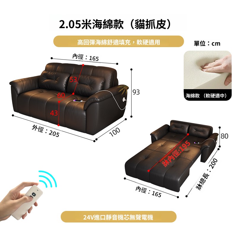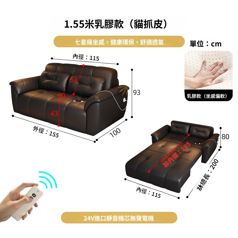 含稅/含運 智能語音電動沙發床小戶型多功能遠程遙控臥室客廳兩用折疊沙發床