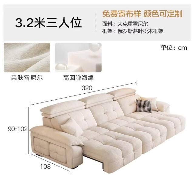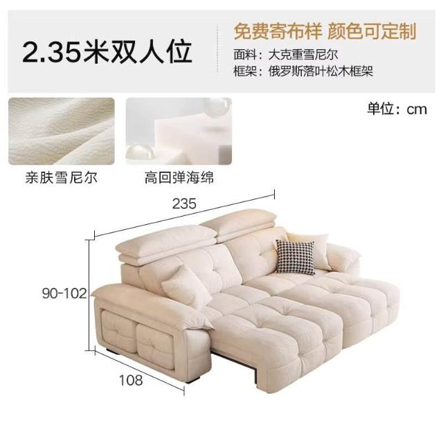 含稅/含運 BOJO雪尼爾沙發床勞倫斯法式奶油風客廳電動家庭影院可躺可睡布藝