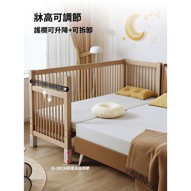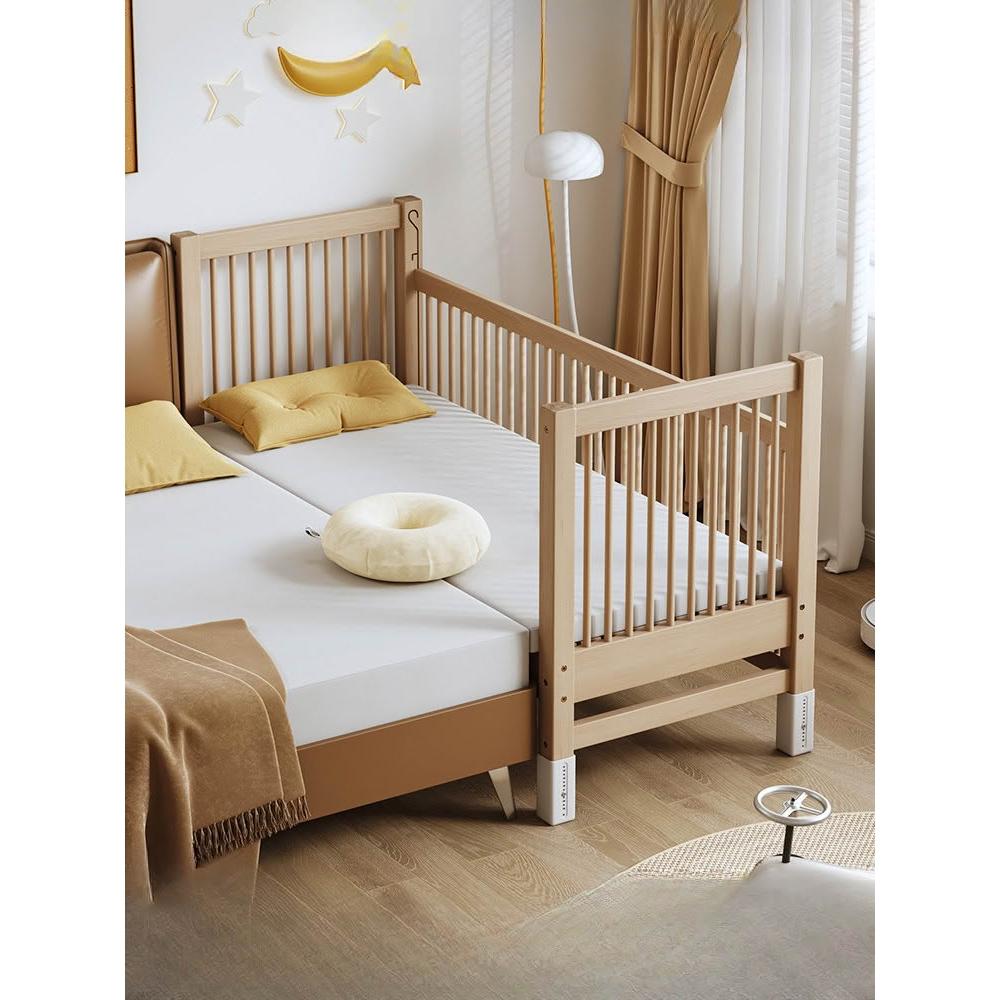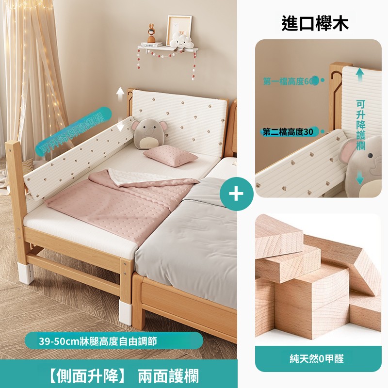 含稅/含運兒童床 搖籃 bb床 榉木拼接床升降帶護欄大床床邊加寬大人床實木小床兒童床