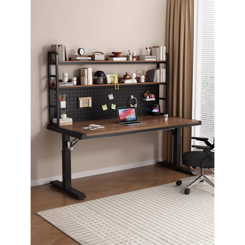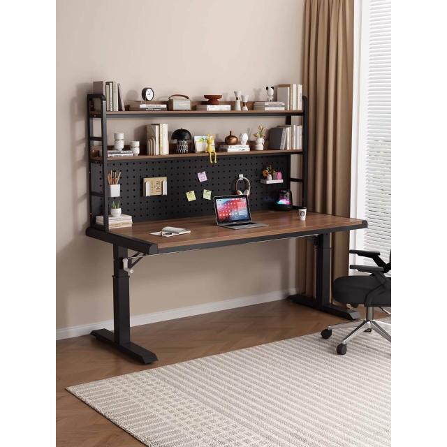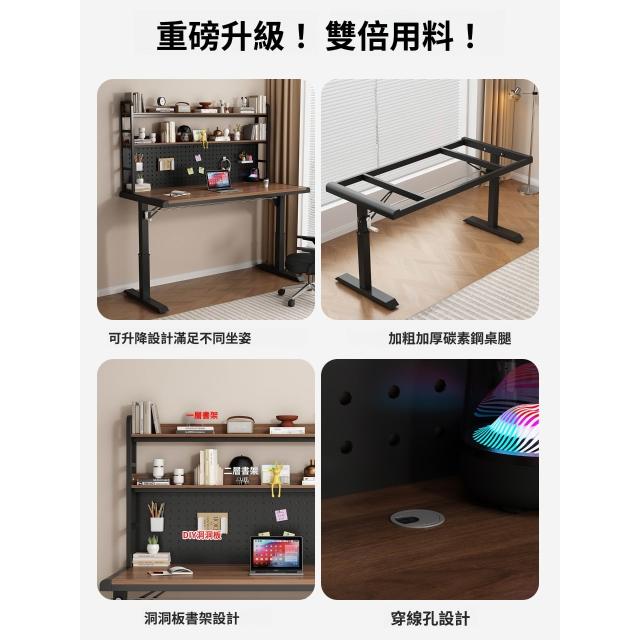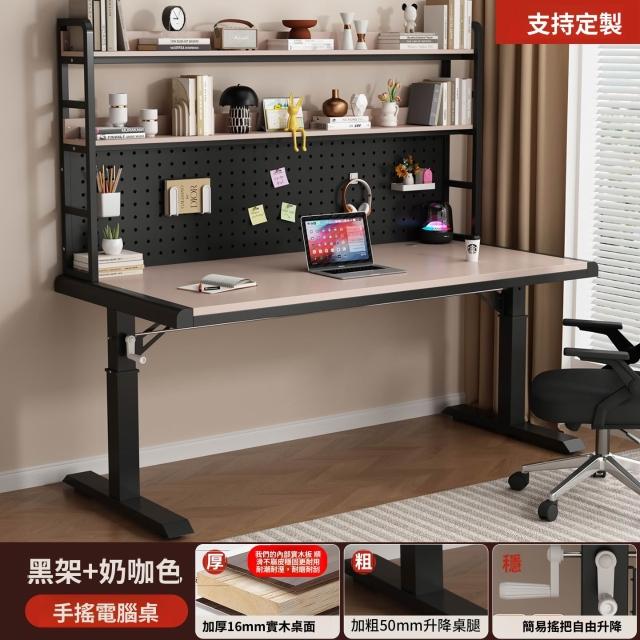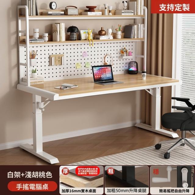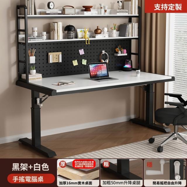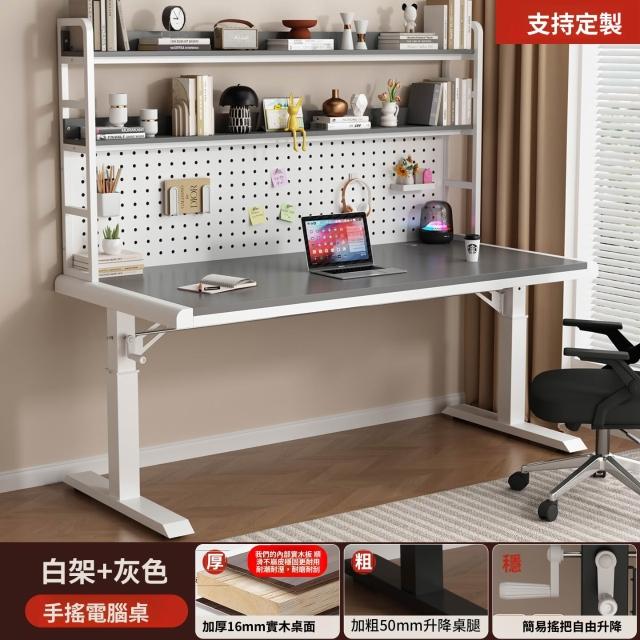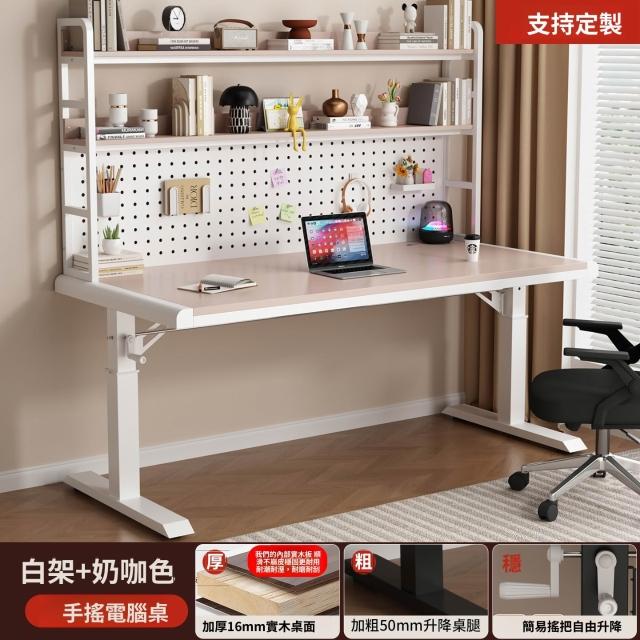 含稅/含運書桌 電腦桌 工作桌 手搖升降桌家用實木書桌書架一體洞洞板電腦桌臥室學生寫字臺桌子