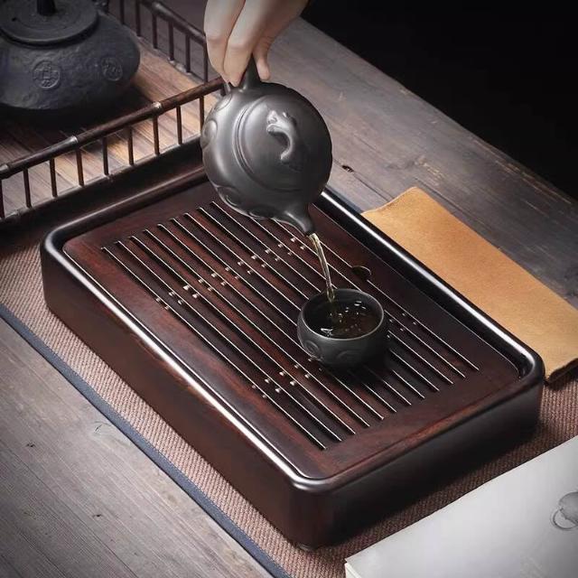 含稅/含運 家用黑檀木實木茶盤茶臺茶海 簡約辦公室盛水蓄水小茶臺水杯托盤