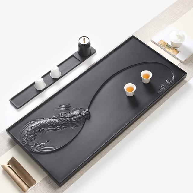 含稅/含運 方舍天然烏金石茶盤2026新款家用中式茶臺辦公室龍吸水茶托盤茶海