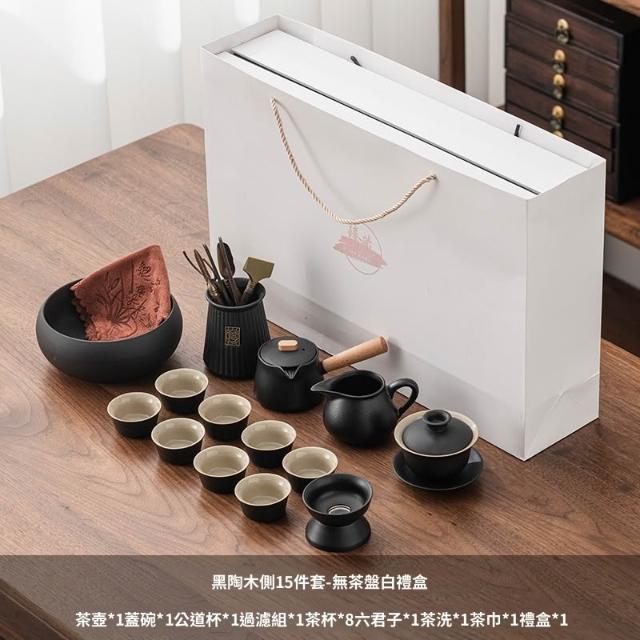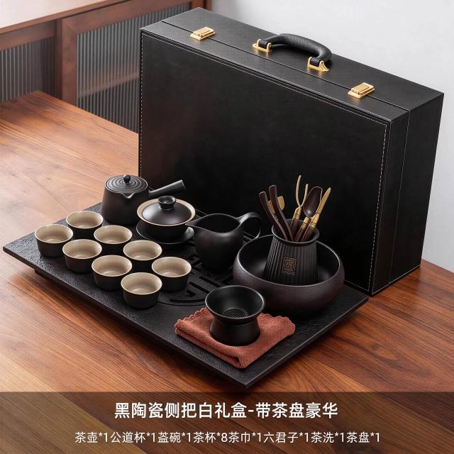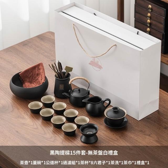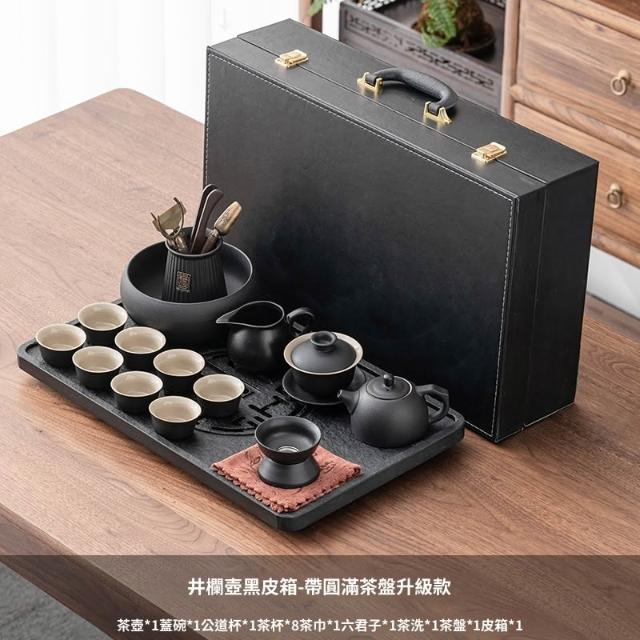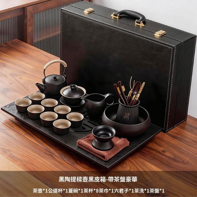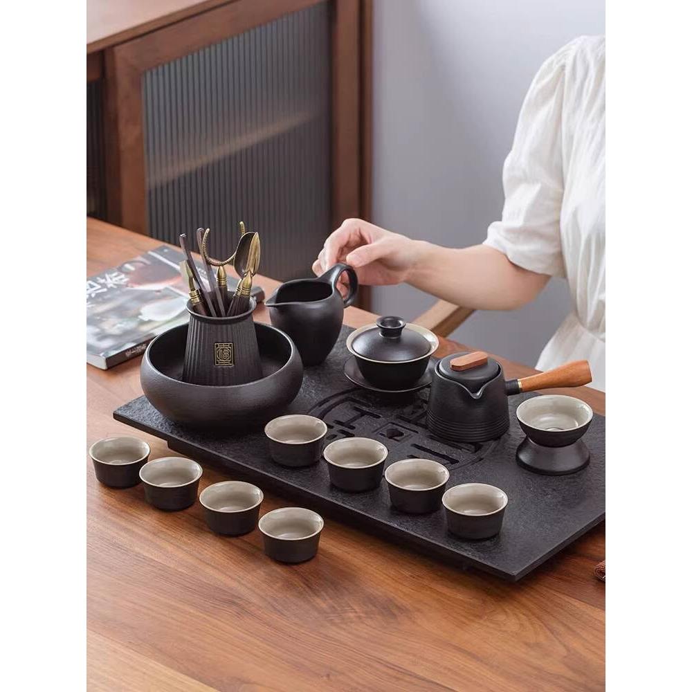 含稅/含運 烏金石茶盤日式茶壺黑陶功夫茶具套裝家用輕奢辦公室會客整套禮盒