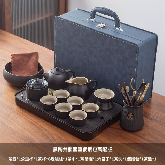 含稅/含運 烏金石茶盤日式茶壺黑陶功夫茶具套裝家用輕奢辦公室會客整套禮盒