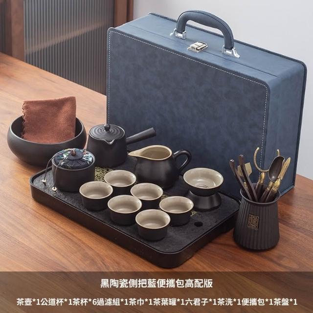 含稅/含運 烏金石茶盤日式茶壺黑陶功夫茶具套裝家用輕奢辦公室會客整套禮盒