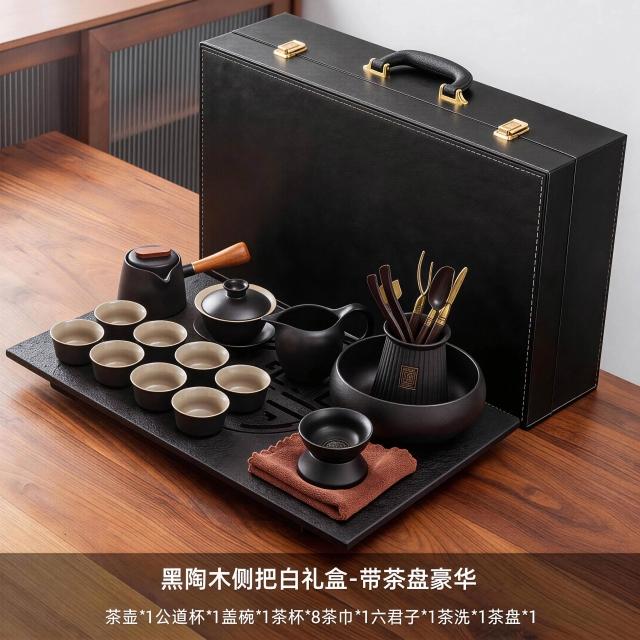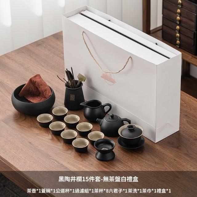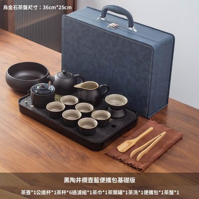 含稅/含運 烏金石茶盤日式茶壺黑陶功夫茶具套裝家用輕奢辦公室會客整套禮盒