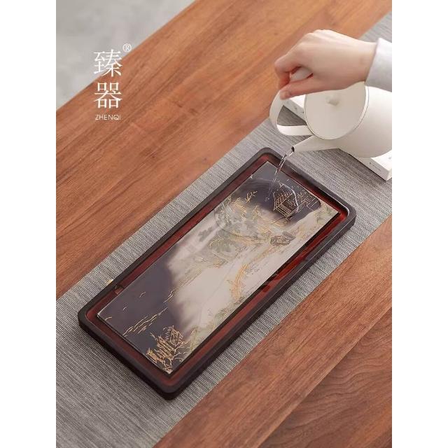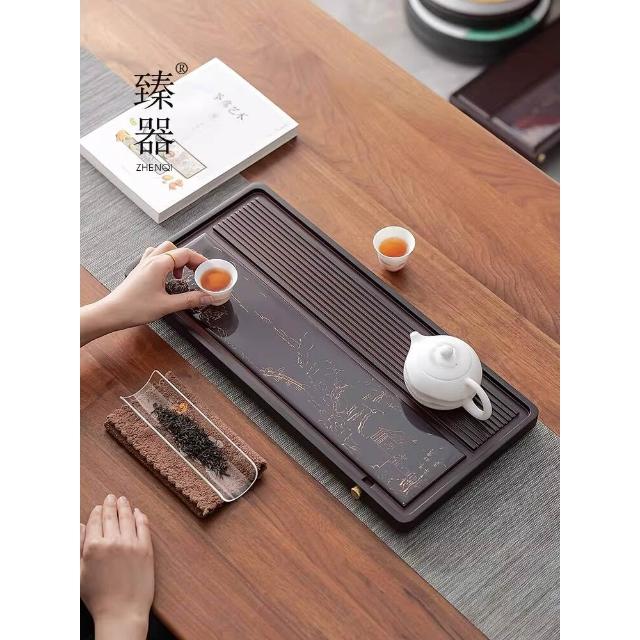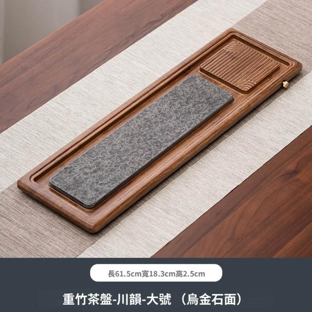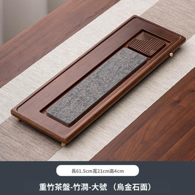 含稅/含運 臻器烏金石茶盤家用功夫茶具小型重竹長方幹泡臺排水托盤茶臺茶海
