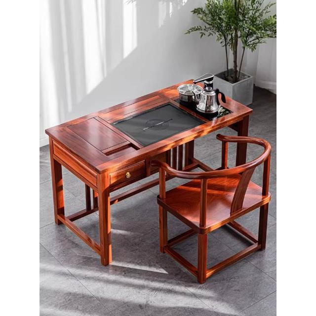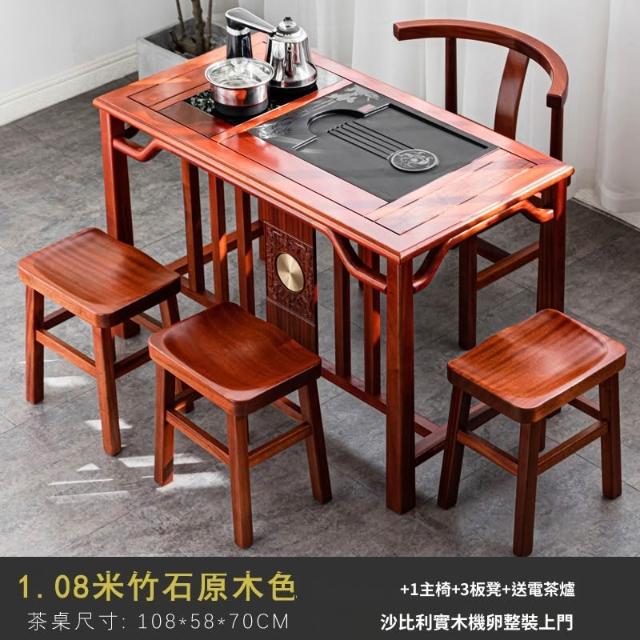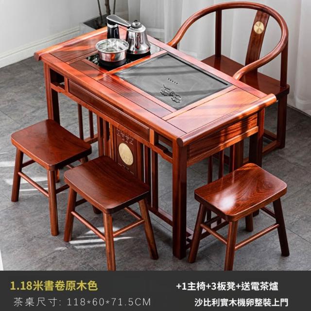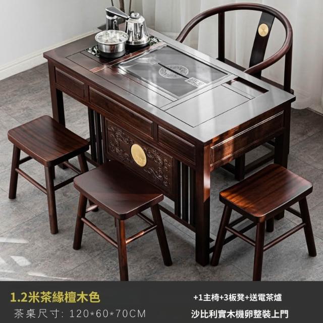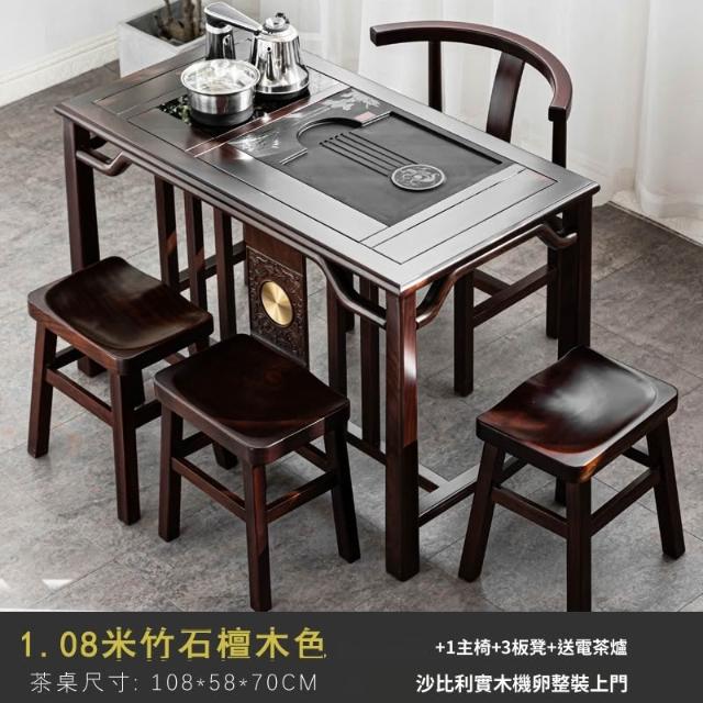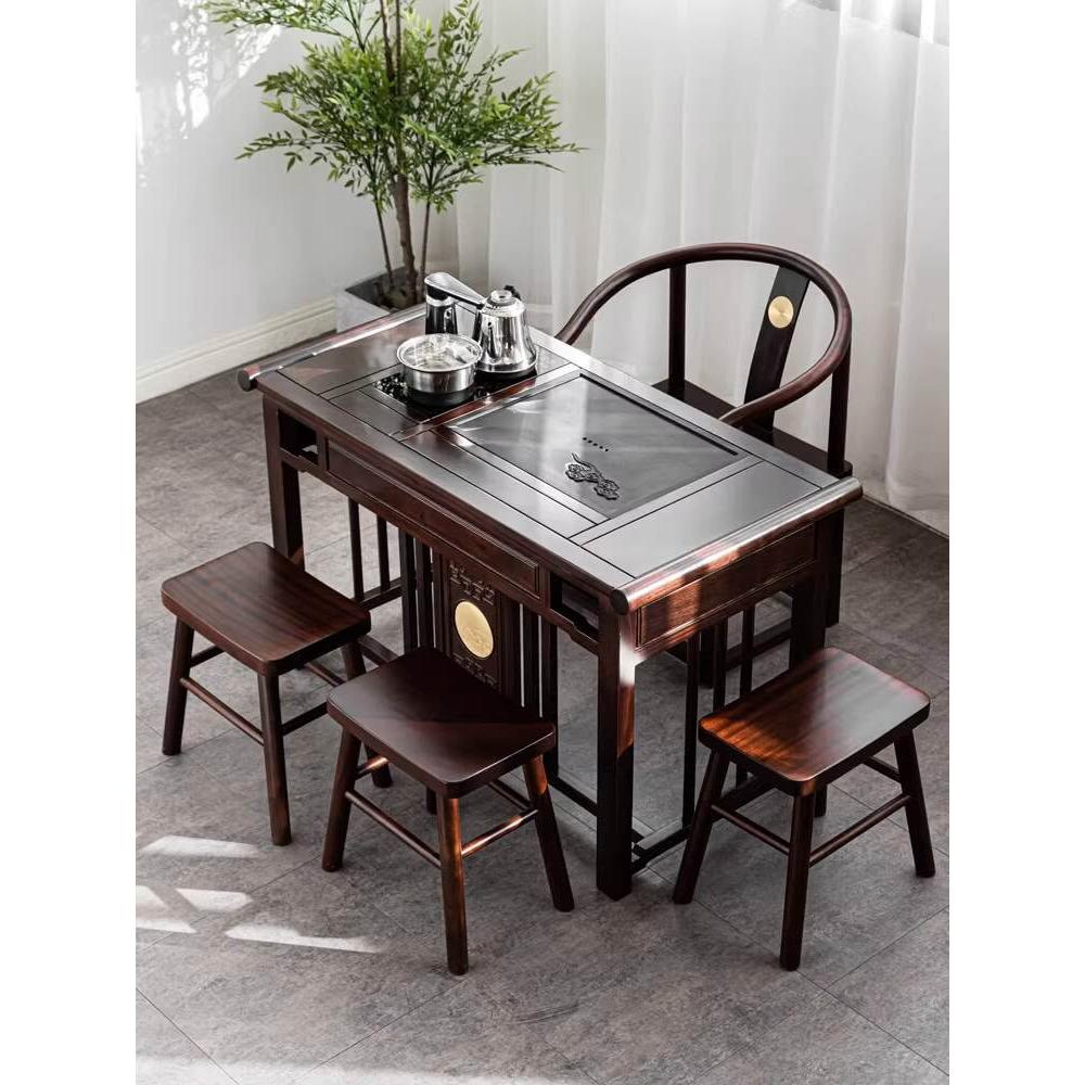含稅/含運 新中式烏檀木功夫茶桌簡約現代家用實木茶桌椅組合客廳禅意小茶臺