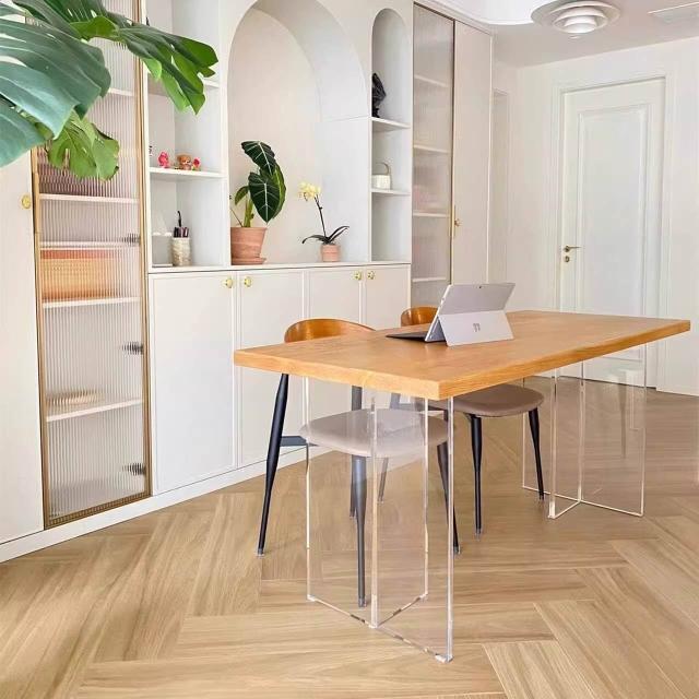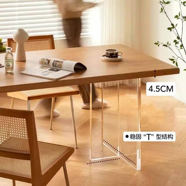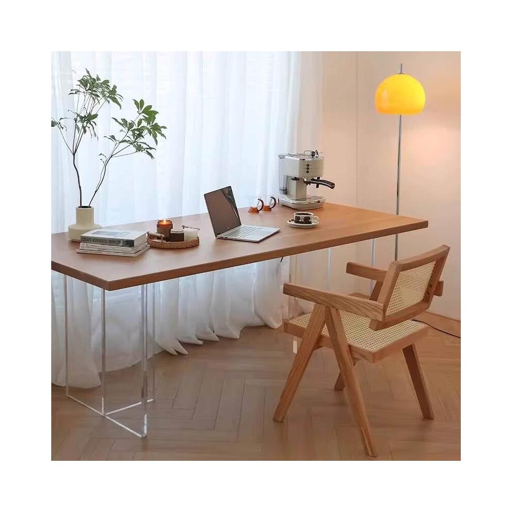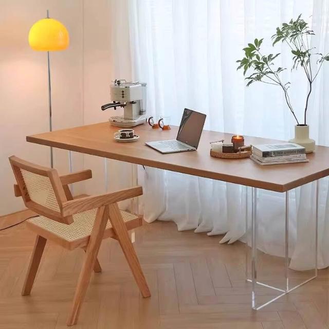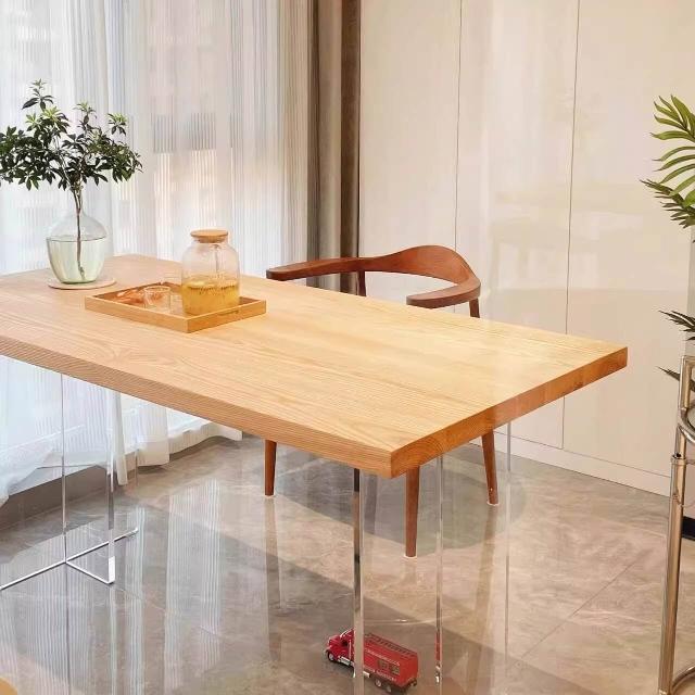 含稅/免運 輕奢亞克力懸浮餐桌簡約家用實木電腦桌辦公桌原木長條客廳學習桌