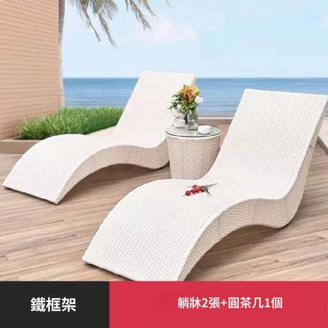 含稅/免運 戶外泳池躺椅休閑沙灘椅海邊別墅藤編防水躺床露天陽臺庭院藤長椅