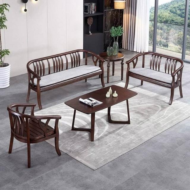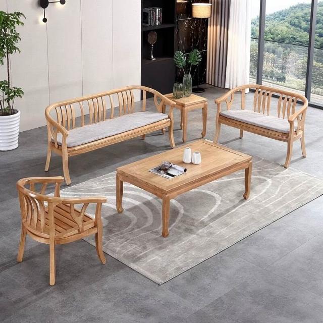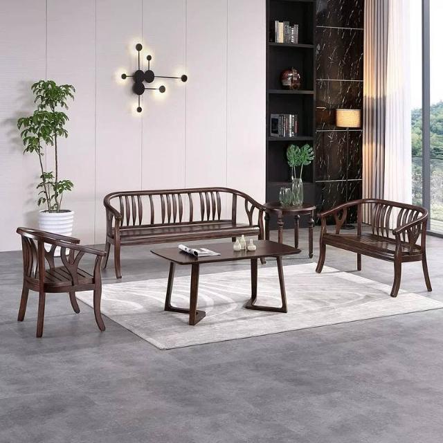 含稅/免運 現代中式實木沙發組合小戶型木頭農村民宿禅意現代三人位客廳家具