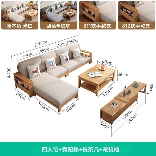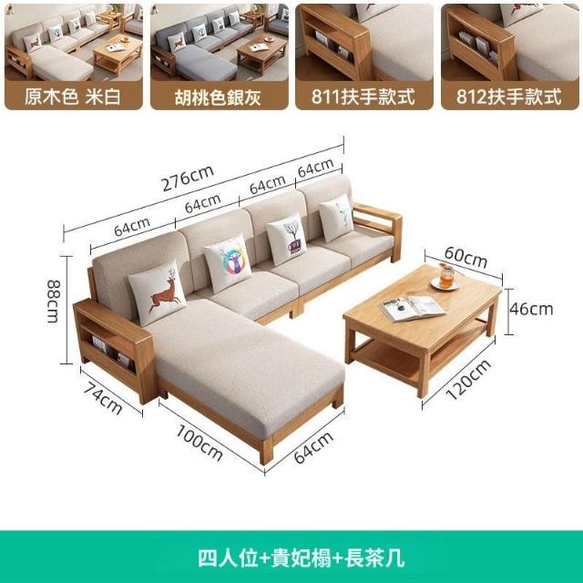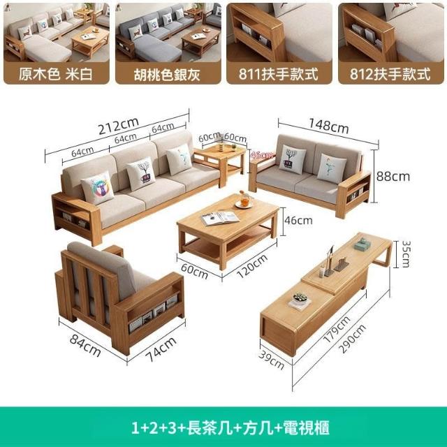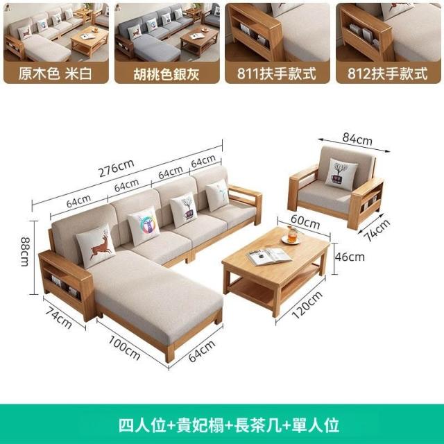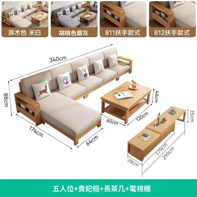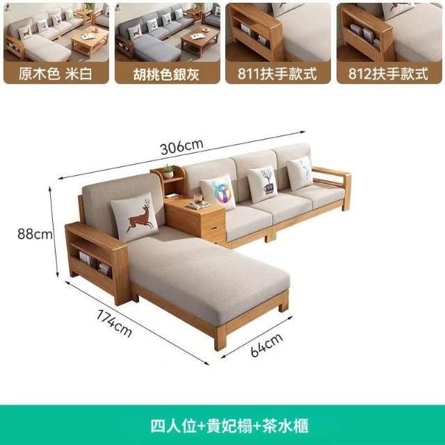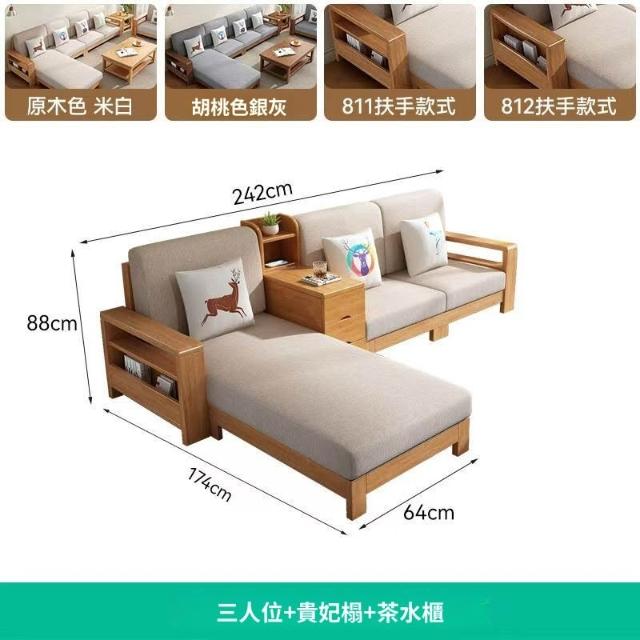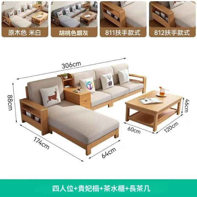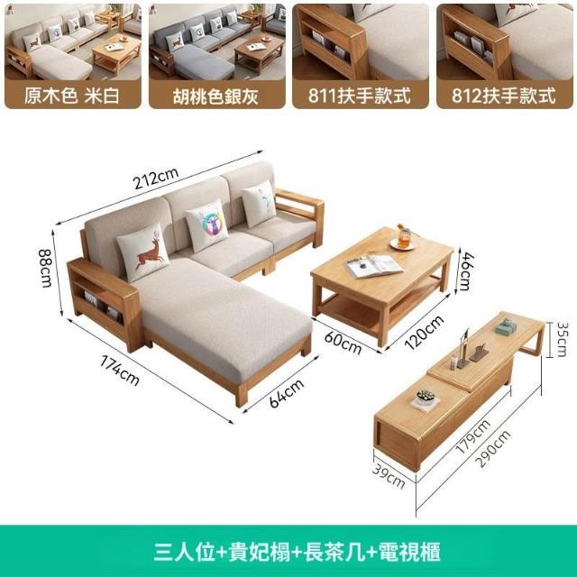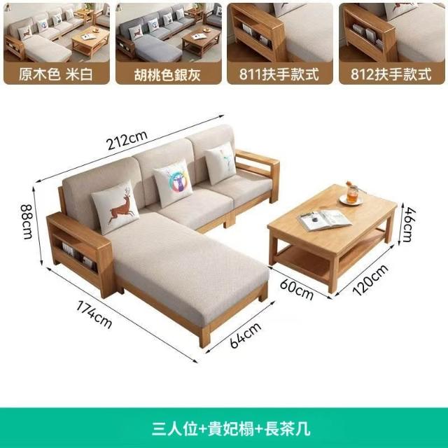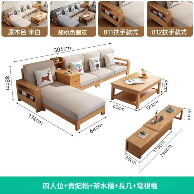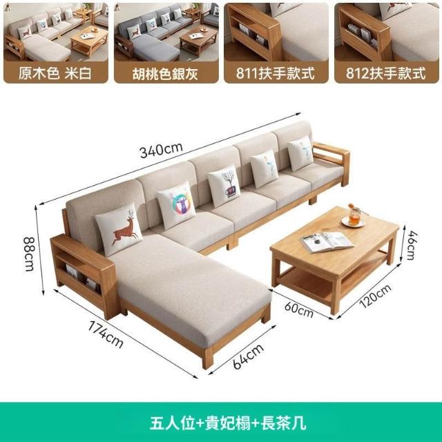 含稅/免運 北歐橡膠木實木沙發組合冬夏中式兩用小戶型客廳轉角現代簡約家具