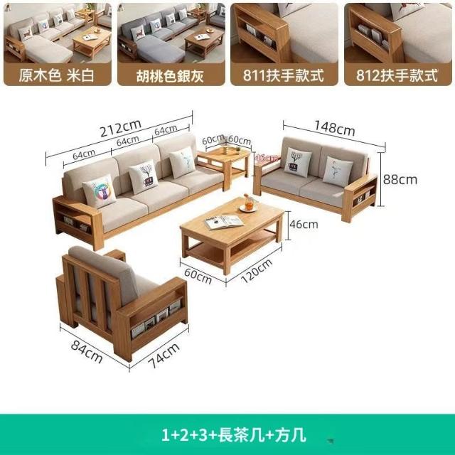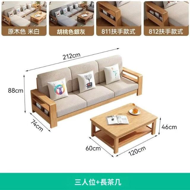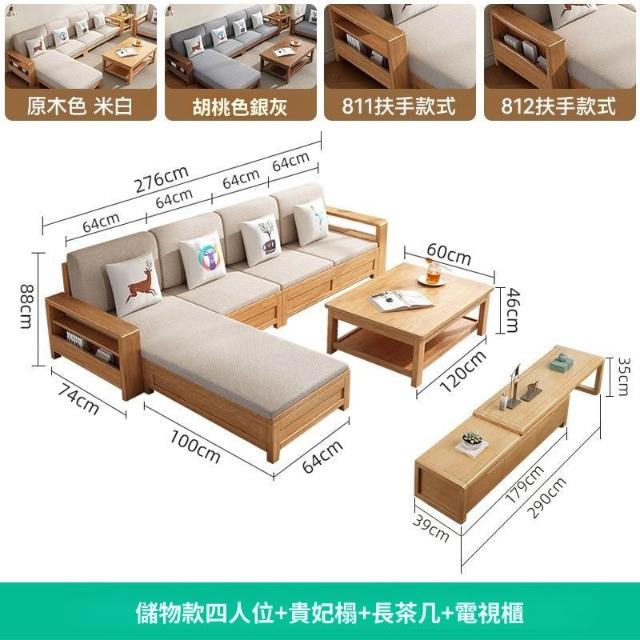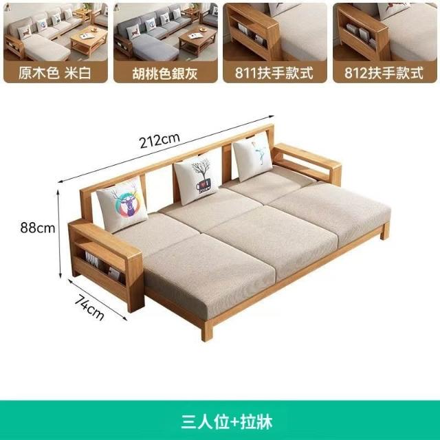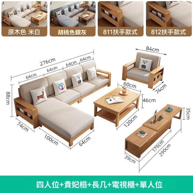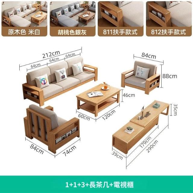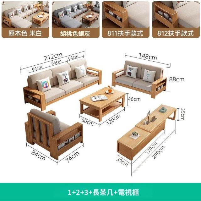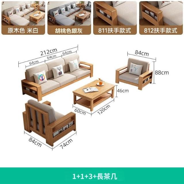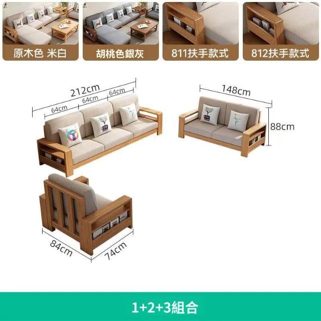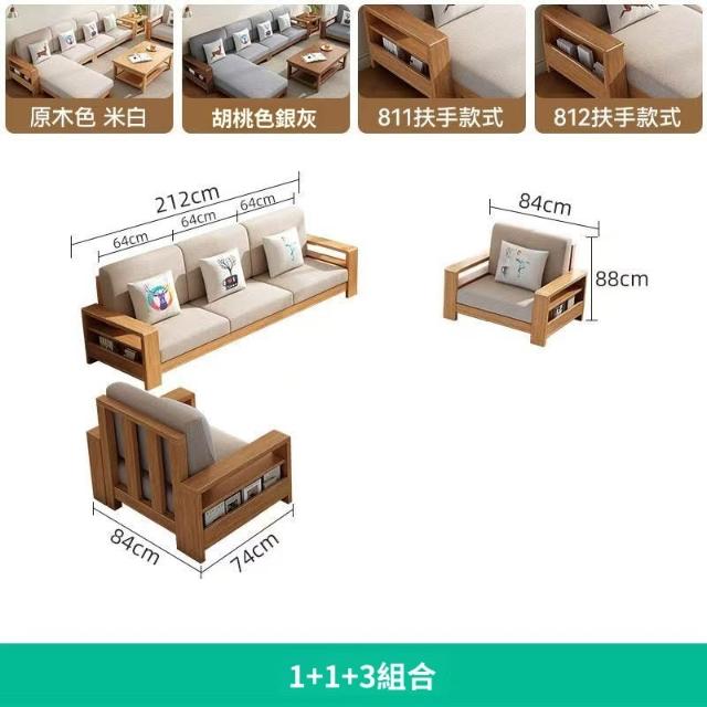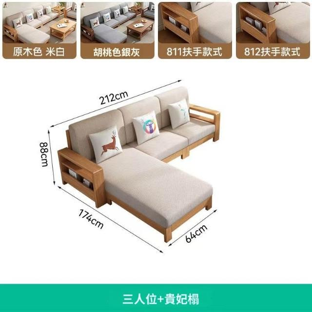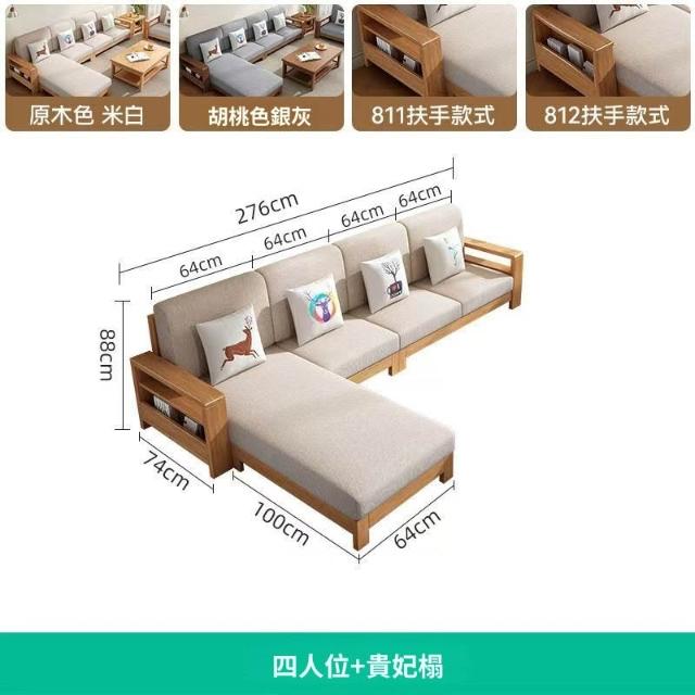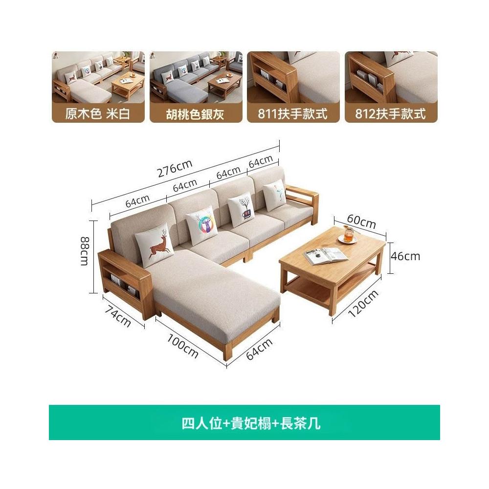 含稅/免運 北歐橡膠木實木沙發組合冬夏中式兩用小戶型客廳轉角現代簡約家具