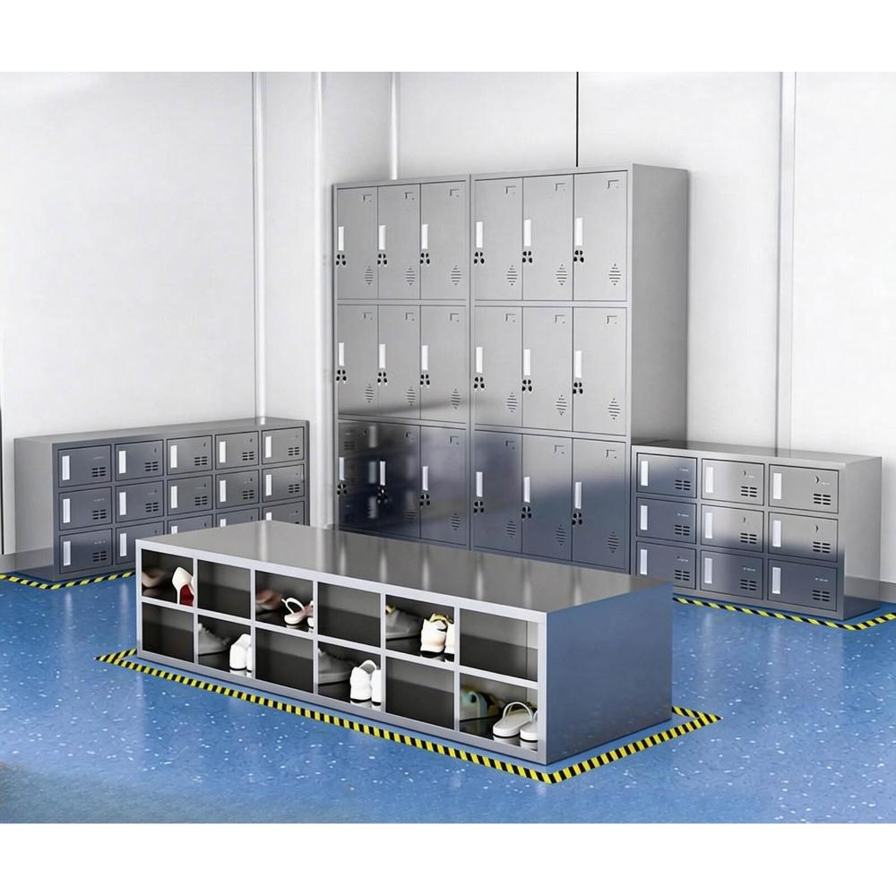 含稅/免運 不銹鋼鞋櫃坐式換鞋凳無塵車間實驗室食品廠帶門更衣室鞋櫃單雙面