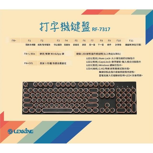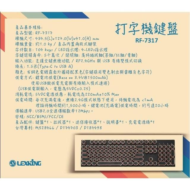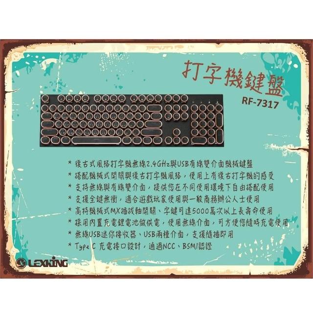 Lexking雷斯特 RF-7317 無線與有線雙介面機械式復古打字機鍵盤