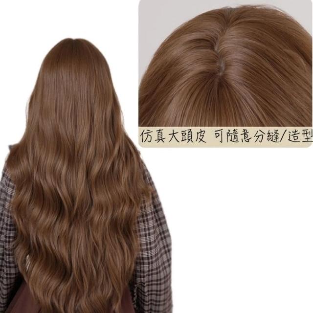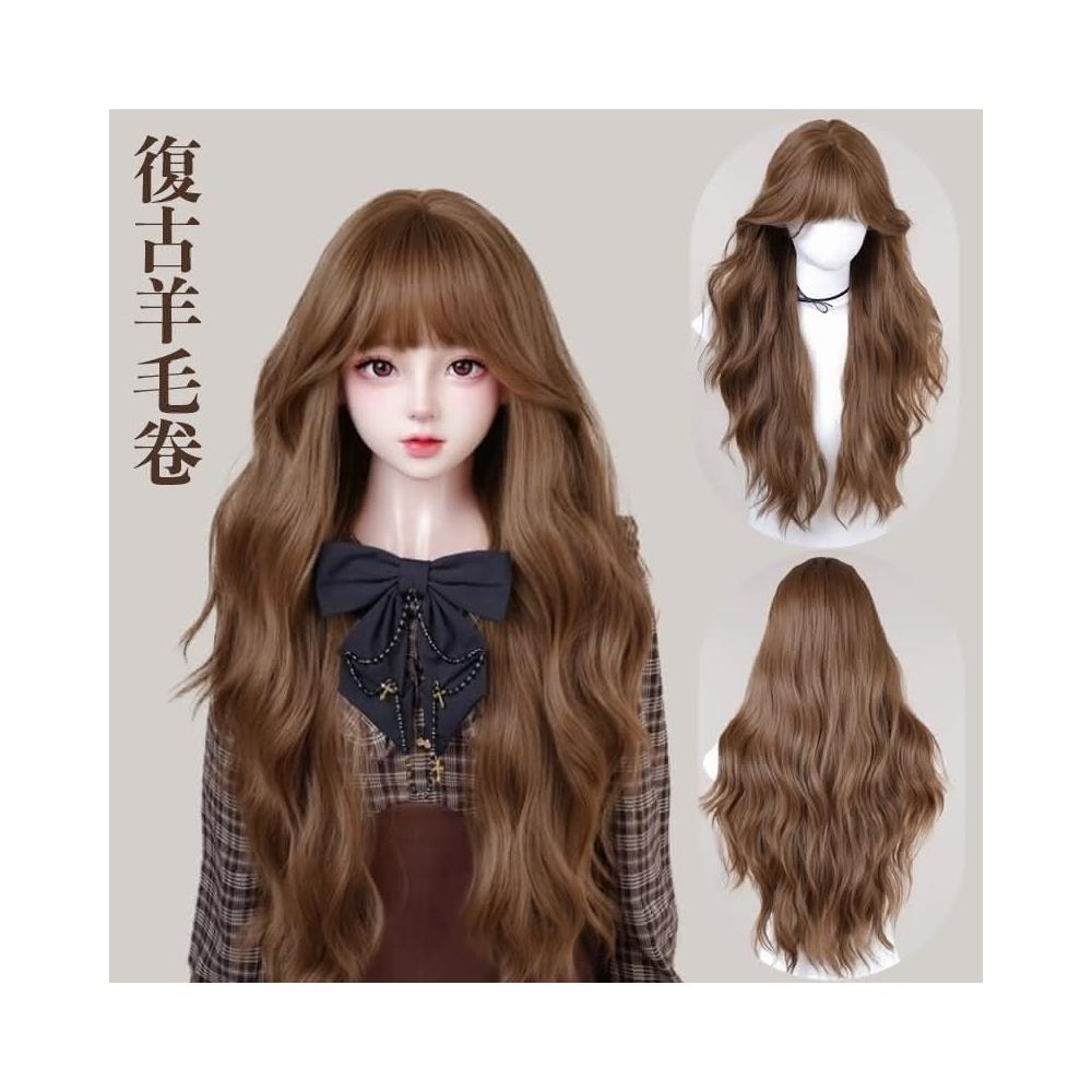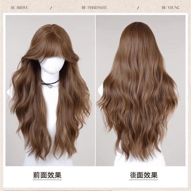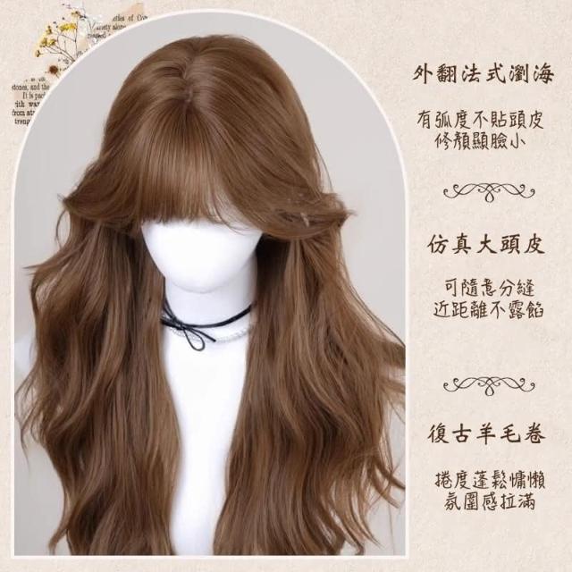 焦糖拿鐵 羊毛捲水波紋假髮女全頭套法式瀏海秋冬氛圍感長捲髮復古