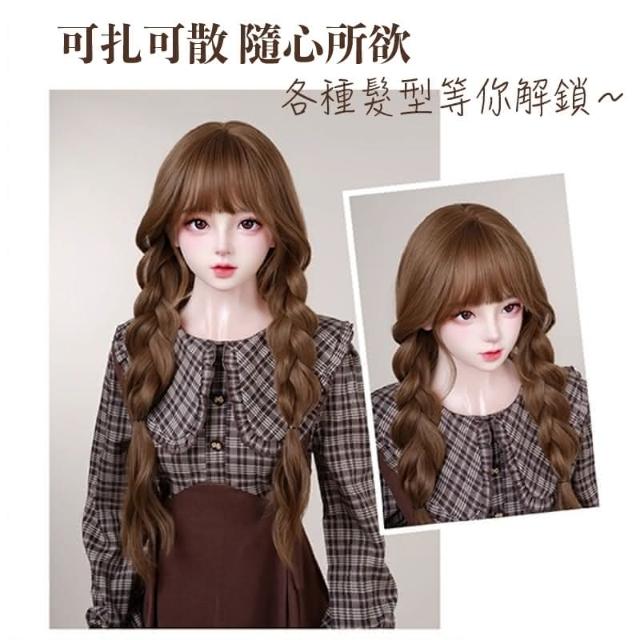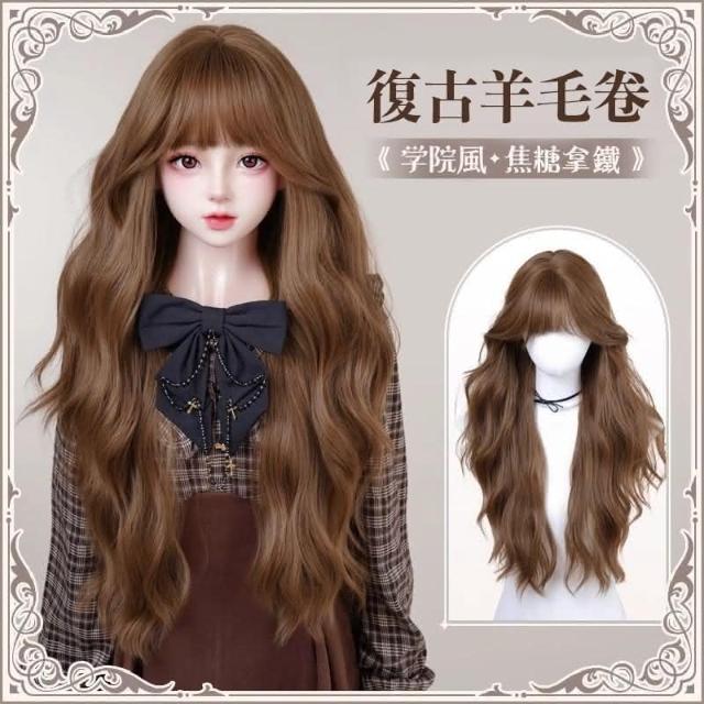 焦糖拿鐵 羊毛捲水波紋假髮女全頭套法式瀏海秋冬氛圍感長捲髮復古