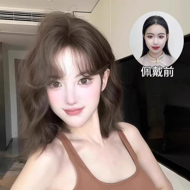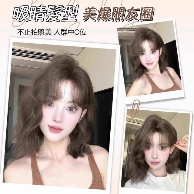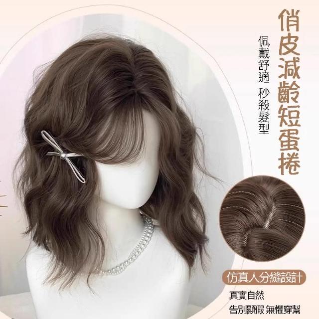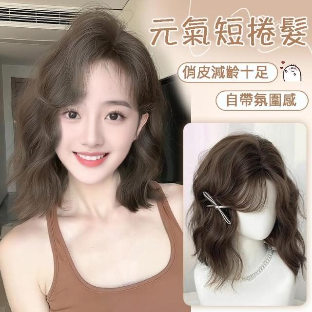 冷棕色 假髮女全頭套韓系俏皮短捲髮水波紋模擬髮蓬鬆高顱頂元氣短捲髮