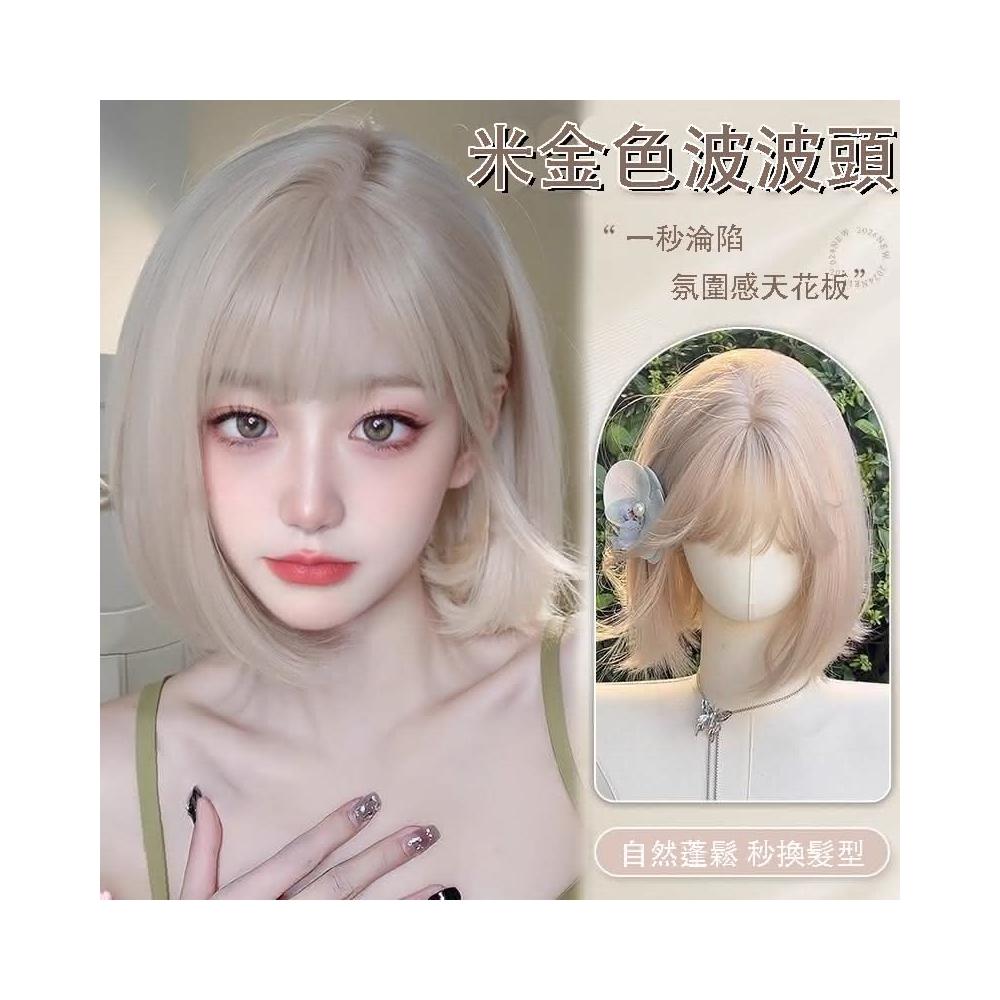 米金色 假髮女白金外翻短髮波波頭女生俏皮可愛整頂仿真髮自然假髮全頭套