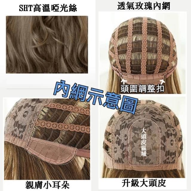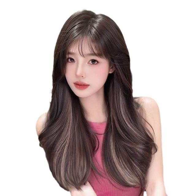 黑茶挑染 假髮女款巴黎畫染長捲髮辣妹挑染時尚仿真髮頭套黑茶微捲假髮