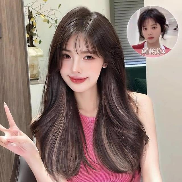 黑茶挑染 假髮女款巴黎畫染長捲髮辣妹挑染時尚仿真髮頭套黑茶微捲假髮