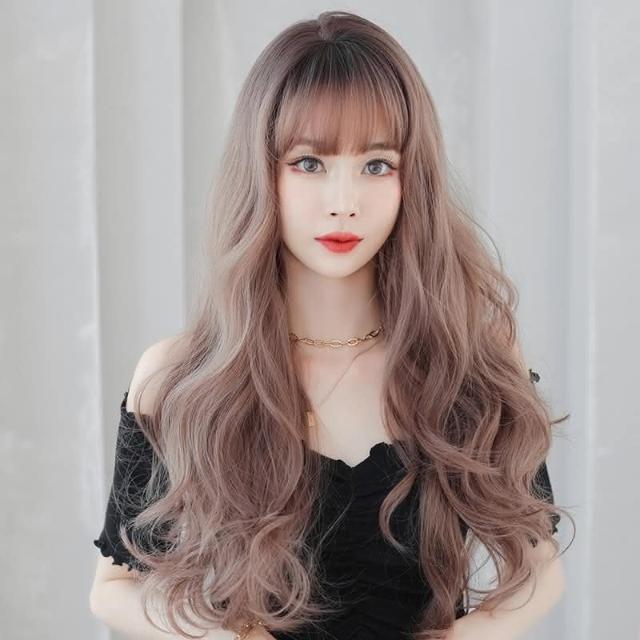 粉亞麻(頭頂染棕) 韓式整頂假髮 女長髮大波浪整頂頭髮空氣劉海全頭套式長捲髮 0322 H072