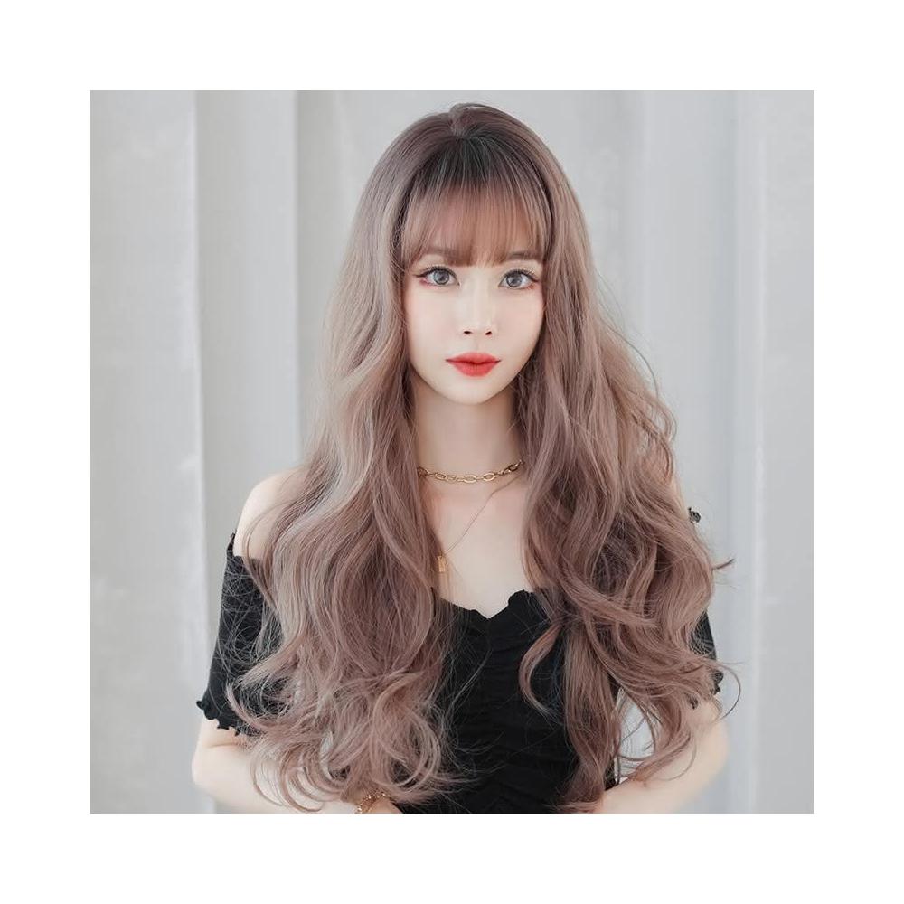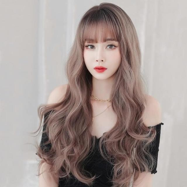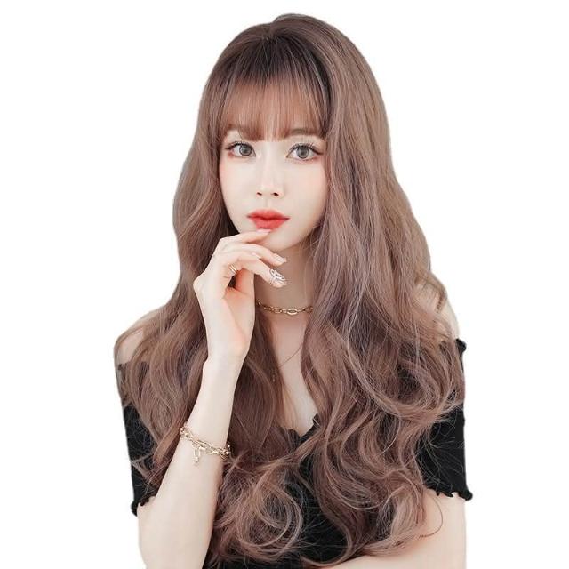 粉亞麻(頭頂染棕) 韓式整頂假髮 女長髮大波浪整頂頭髮空氣劉海全頭套式長捲髮 0322 H072