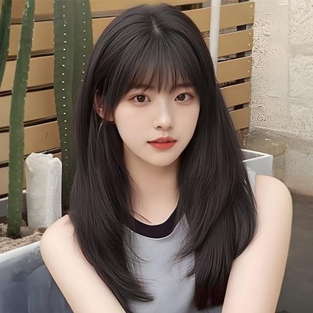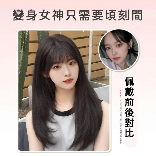 黑茶色 假髮女長髮網紅假髮套內扣鎖骨髮空氣瀏海S分縫逼真自然全頭套 513