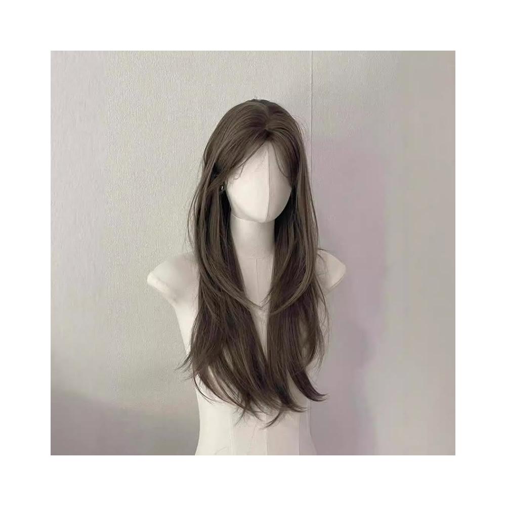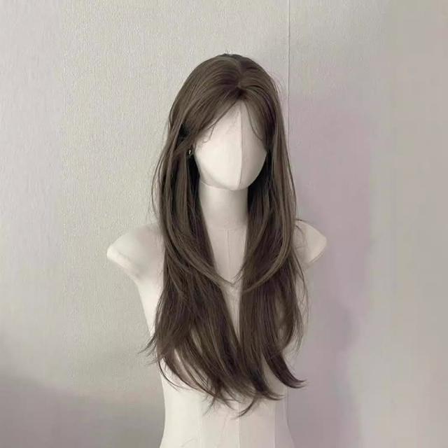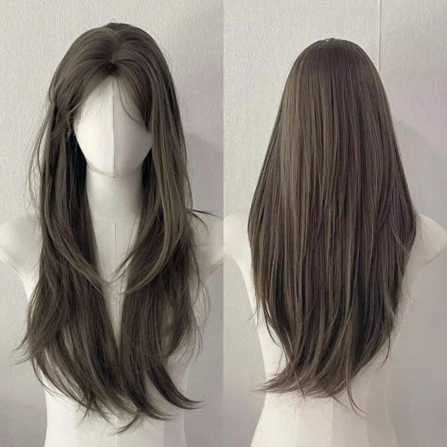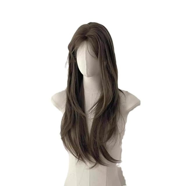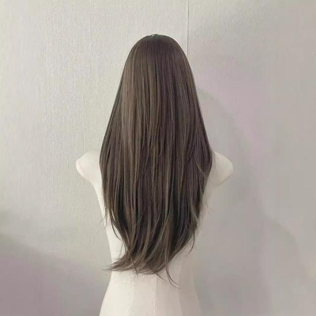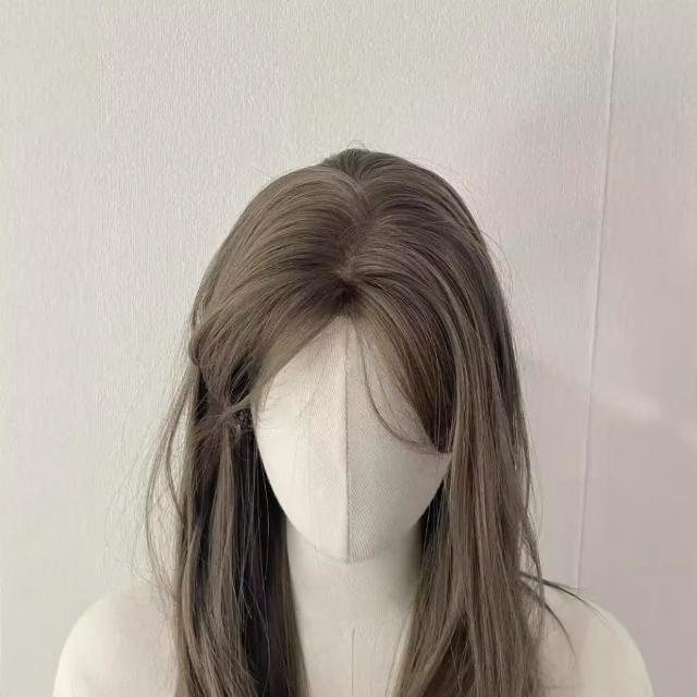 奶茶灰棕色 假髮女中分長直髮奶茶灰褐色氛圍感隱形假髮全頭套 W356