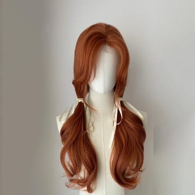 美式大橘‧髒橘色假髮前額蕾絲女大波浪捲髮長髮八字瀏海 DM443