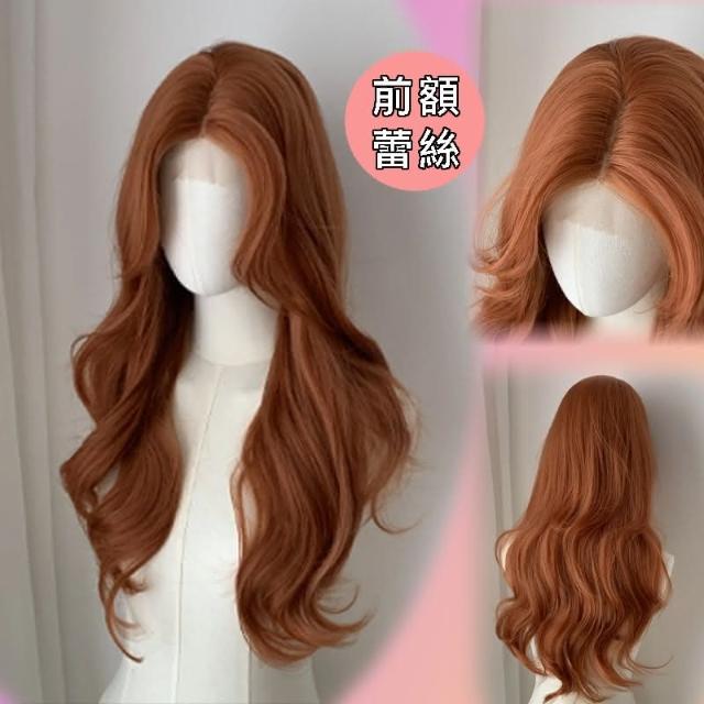 美式大橘‧髒橘色假髮前額蕾絲女大波浪捲髮長髮八字瀏海 DM443