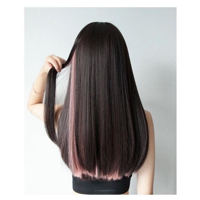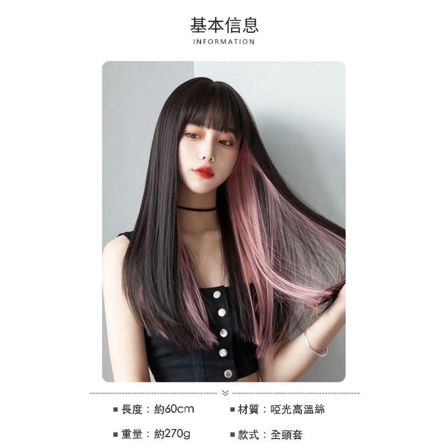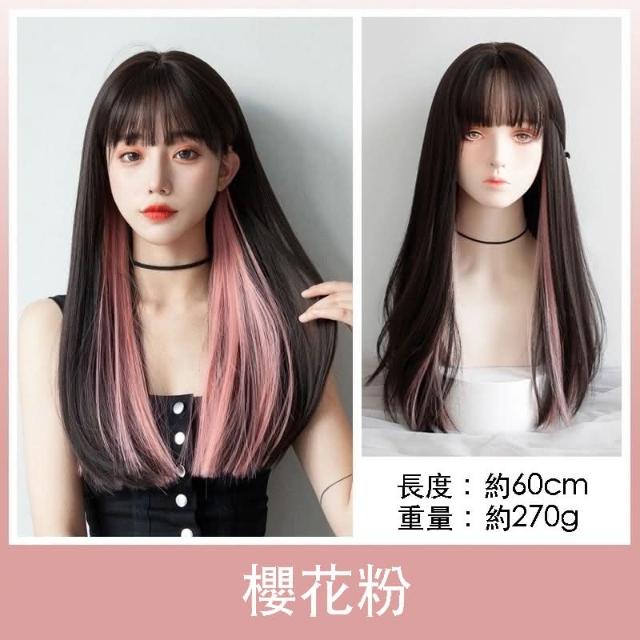 黑茶挑染櫻花粉 掛耳染粉色 整頂假髮 假髮 空氣劉海 假髮女 wig 仿真 假髮女整頂 長直假髮 長假髮