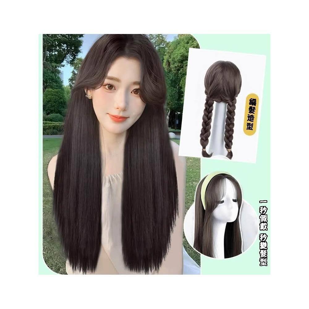 中分八字瀏海 整頂假髮 假髮 空氣劉海 假髮女 wig 假发 假髮女整頂 黑色假髮 黑長直假髮