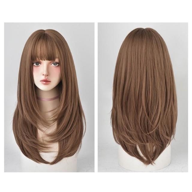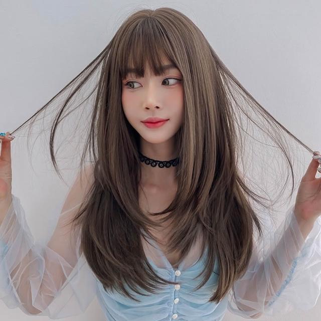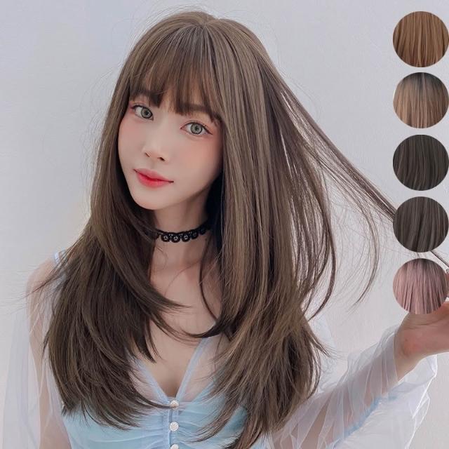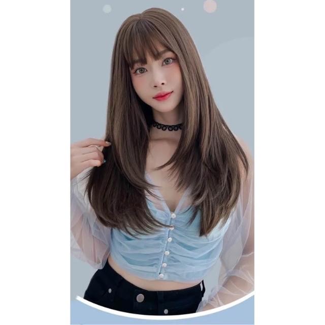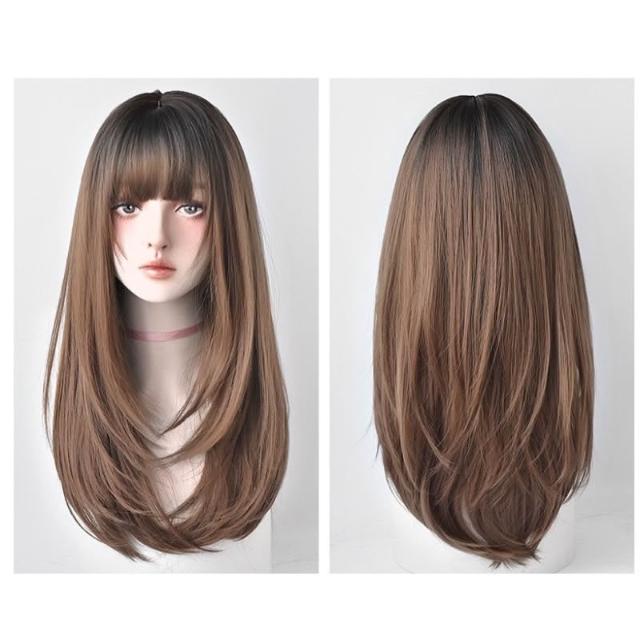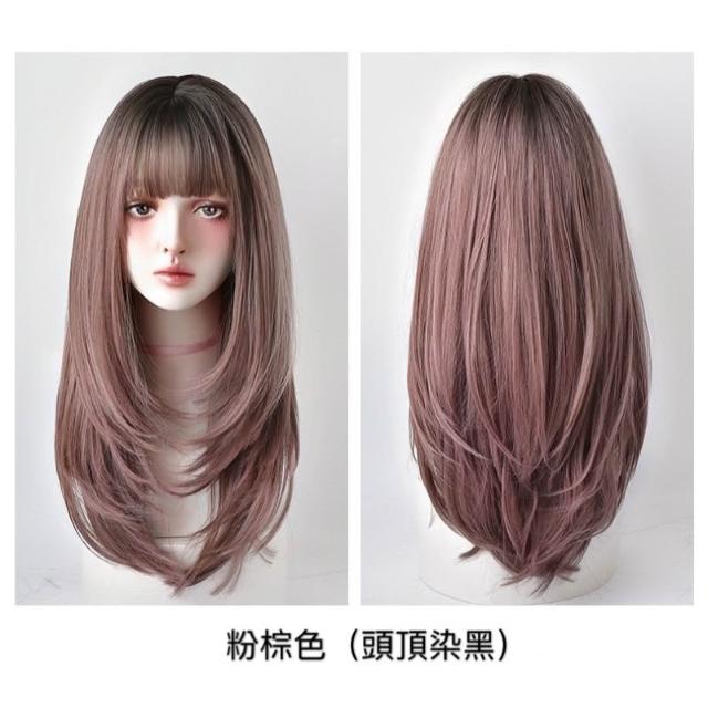 漸變色 整頂假髮 假髮 空氣劉海 假髮女 wig 假髮女整頂 中長假髮 中長款假髮 女生假髮 假頭髮