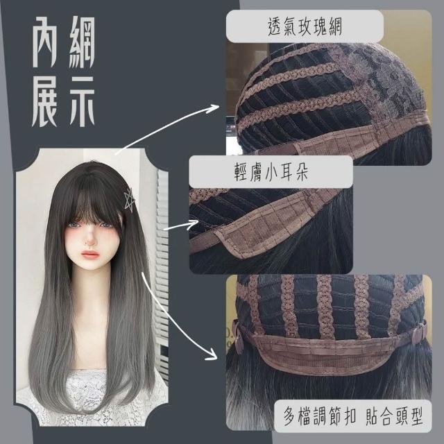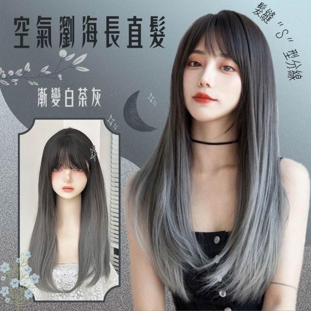 黑棕漸變煙灰/黑漸變白灰 整頂假髮 假髮 空氣劉海 假髮女 wig 假髮女整頂 挑染假髮 長假髮 女生假髮 假頭髮