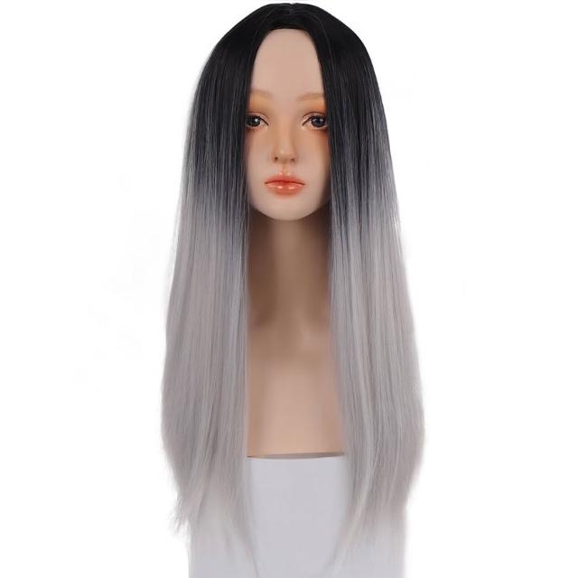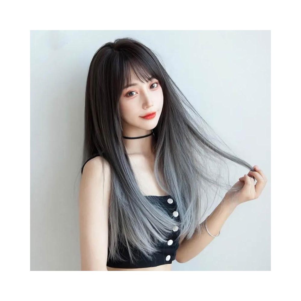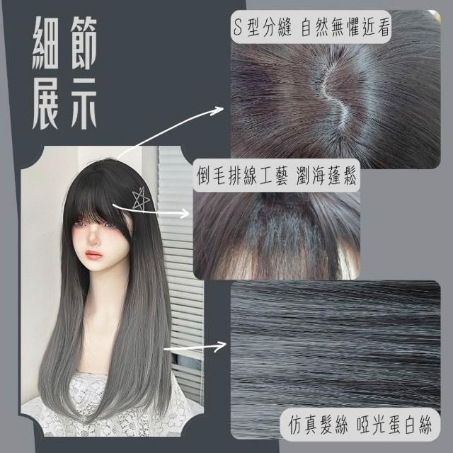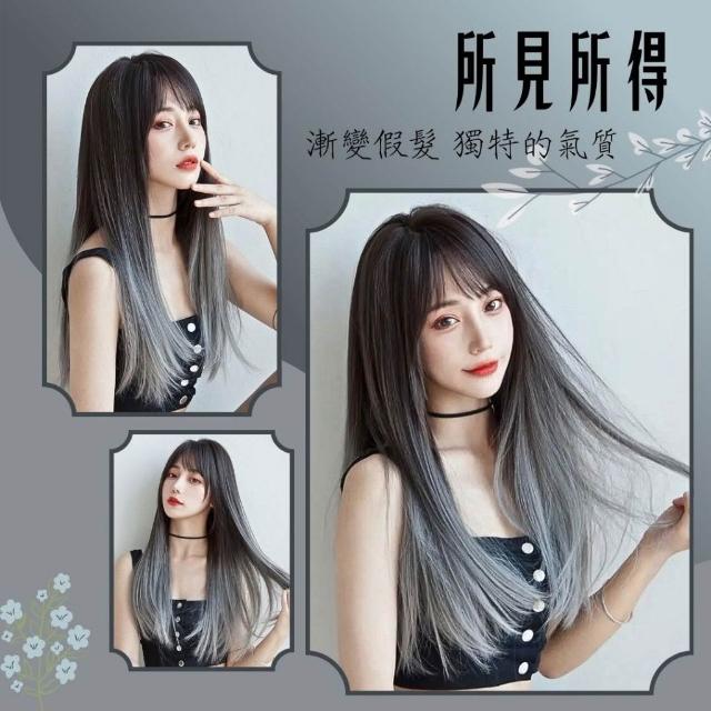 黑棕漸變煙灰/黑漸變白灰 整頂假髮 假髮 空氣劉海 假髮女 wig 假髮女整頂 挑染假髮 長假髮 女生假髮 假頭髮
