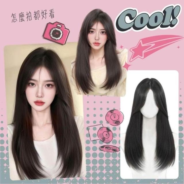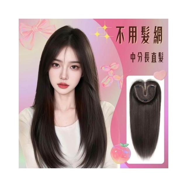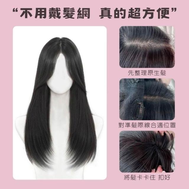 黑棕/冷棕 不用戴髮網中分長直髮中分蕾絲假髮女全頭套遮白髮增髮量假髮片頭頂補髮片