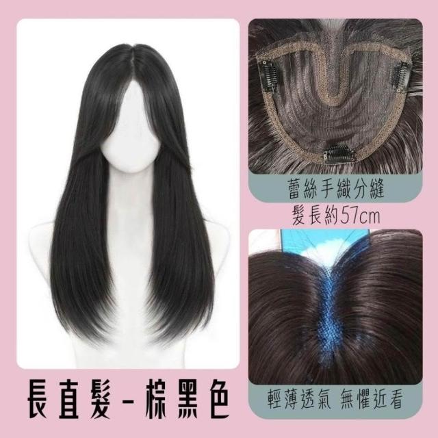 黑棕/冷棕 不用戴髮網中分長直髮中分蕾絲假髮女全頭套遮白髮增髮量假髮片頭頂補髮片