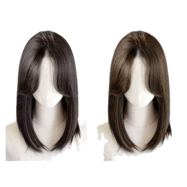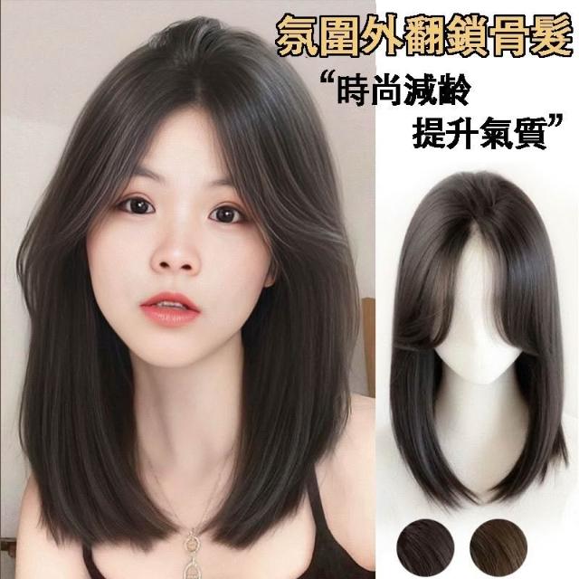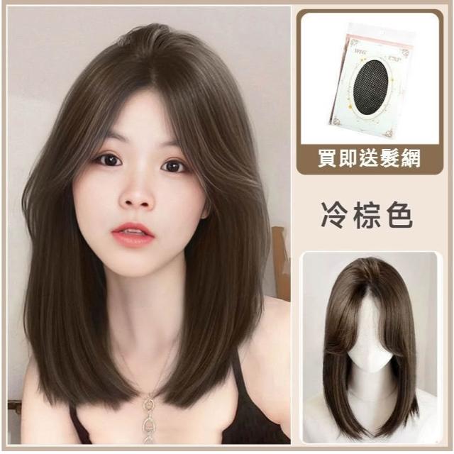 黑茶/冷棕 整頂假髮 女中長髮全頭套新款中分八字瀏海鎖骨髮自然假髮套6999 B I